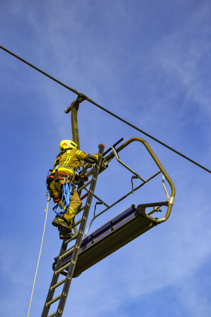 Podczas tegorocznych ćwiczeń założono, że awarii uległa nie tylko kolej linowa, ale i system zabezpieczający. W związku z tym konieczna była ewakuacja pasażerów z wykorzystaniem drabin przystawnych oraz technik alpinistycznych – przy kanapach wyciągu rozstawiono drabiny, po których miały schodzić ewakuowane osoby, a wszystko odbywało się przy asekuracji zapiętych w liny strażaków.