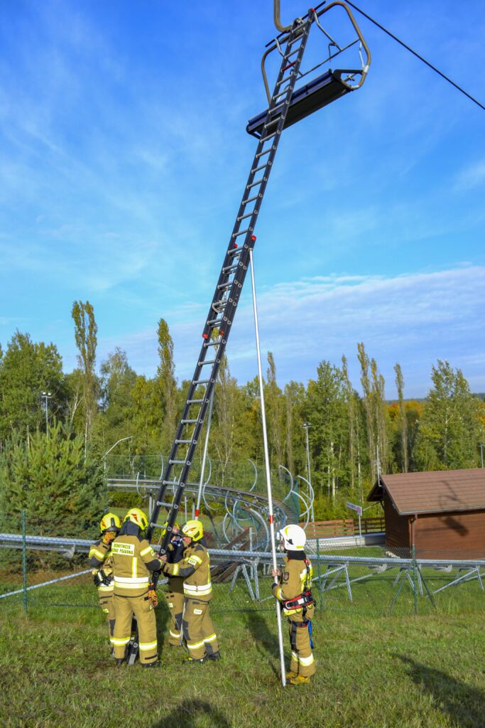 Góra Kamieńsk kolejny raz stała się miejscem ćwiczeń dla strażaków, którzy przez trzy dni, wraz z pracownikami ośrodka, trenowali ewakuację pasażerów z kolei linowej.