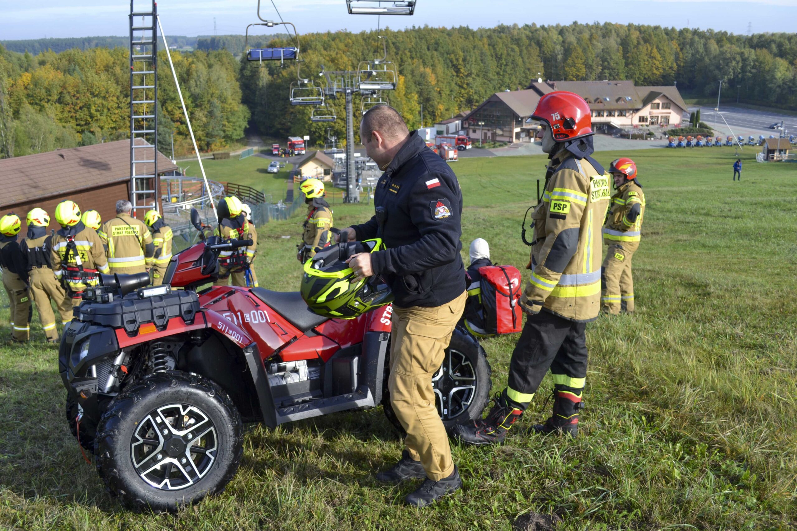 Na Górze Kamieńsk strażacy ćwiczyli ewakuację pasażerów kolei linowej