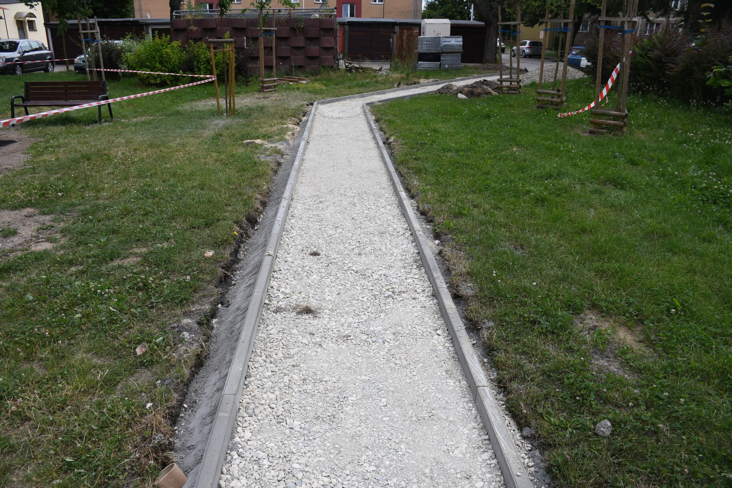 Przy ul. Ściegiennego wielkimi krokami zbliża się koniec prac związanych z rozbudową terenu rekreacyjnego położonego między blokami. Obok istniejącego placu zabaw powstaje mini-linarium.