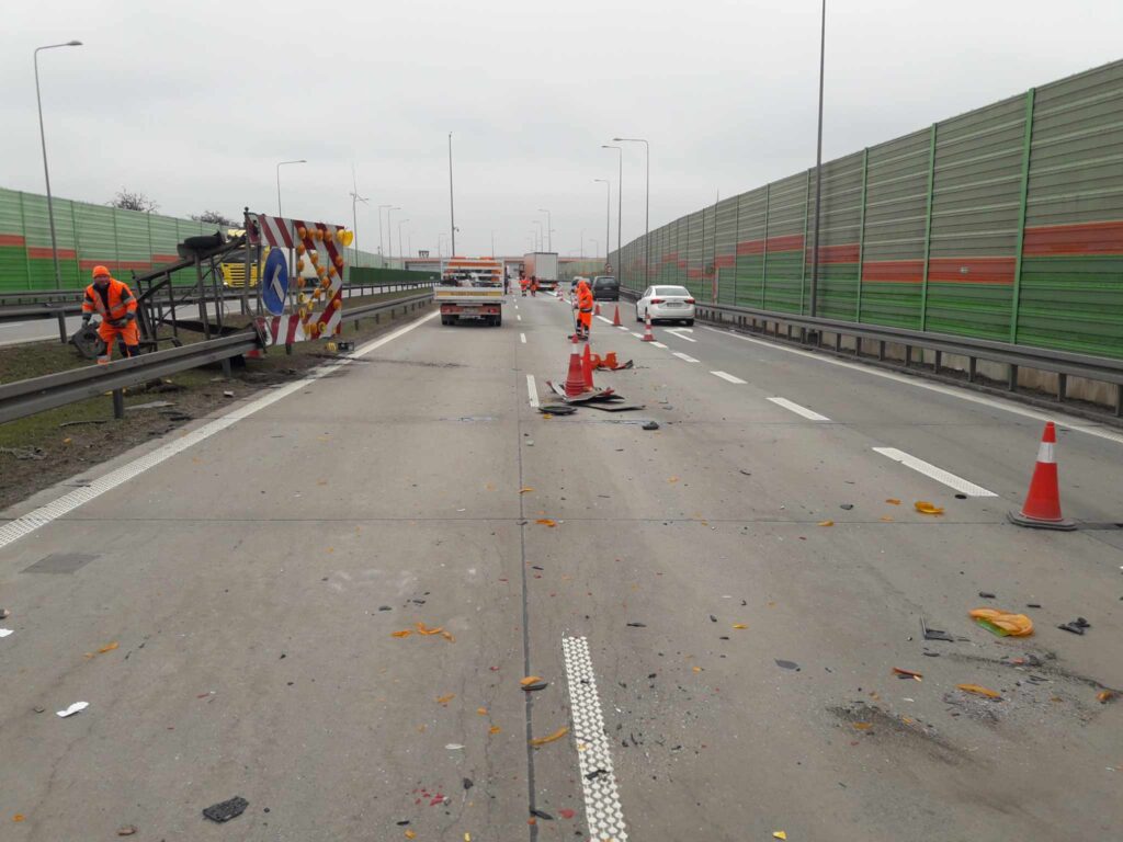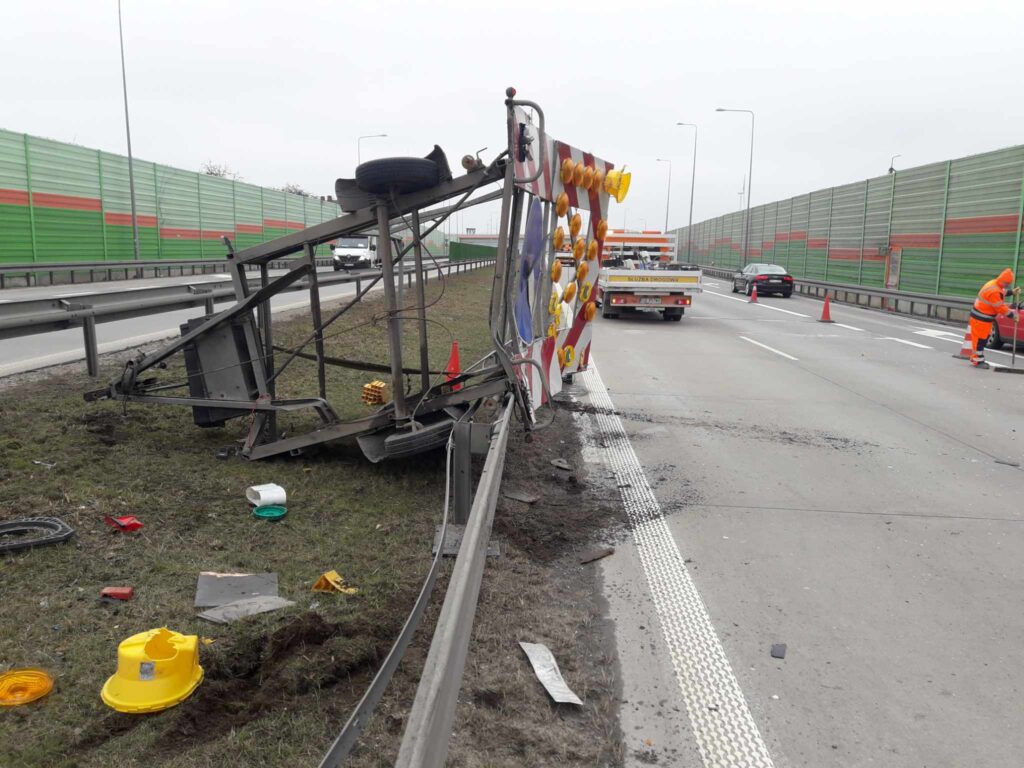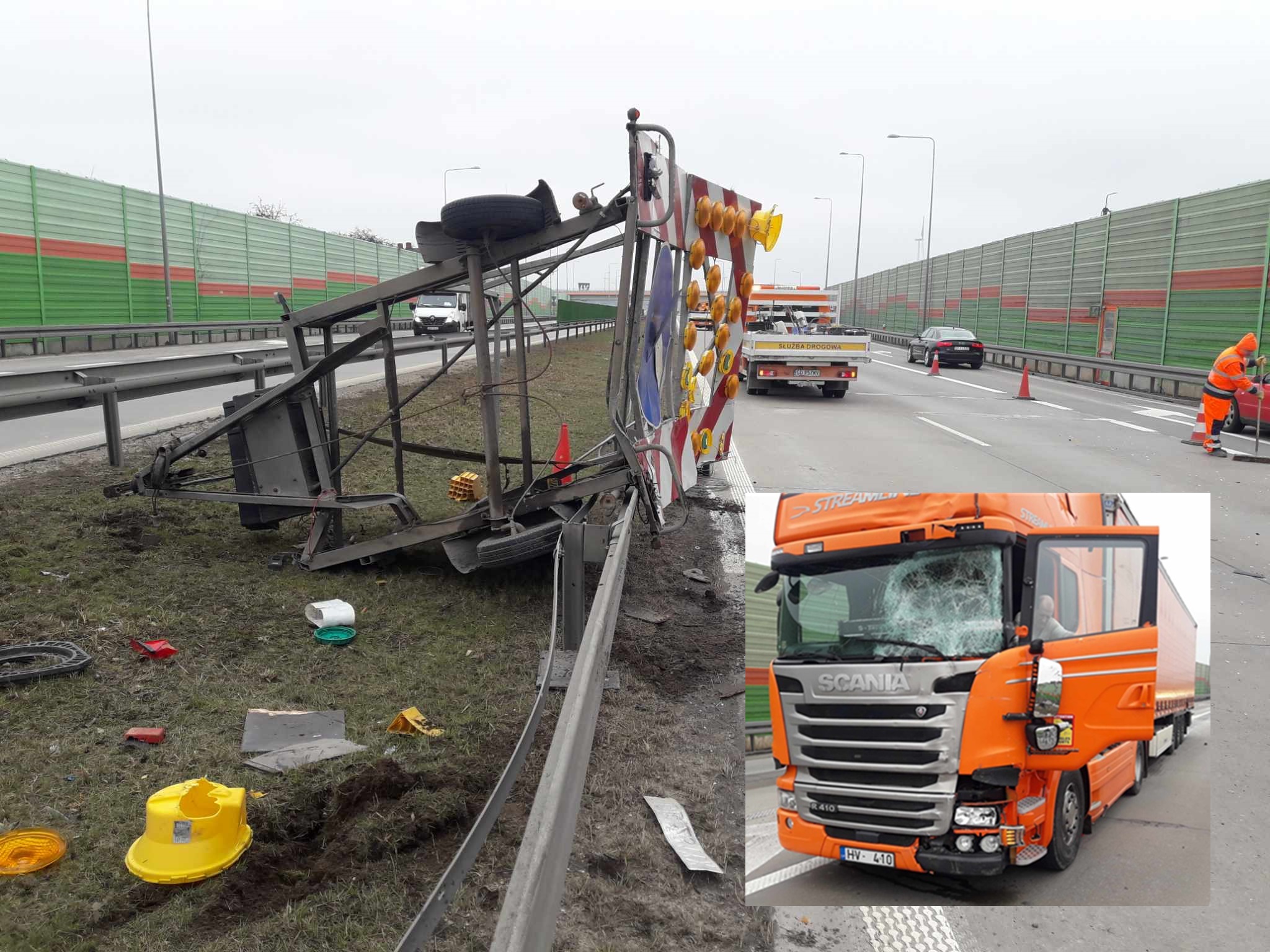 Na S8 ciężarówka staranowała pojazd służby drogowej – ZDJĘCIE