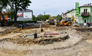 W piątek na części od torów PKP do ul. 1 Maja wylewano pierwszą warstwę masy bitumicznej. Równocześnie trwa układanie nowych chodników po obu stronach drogi.