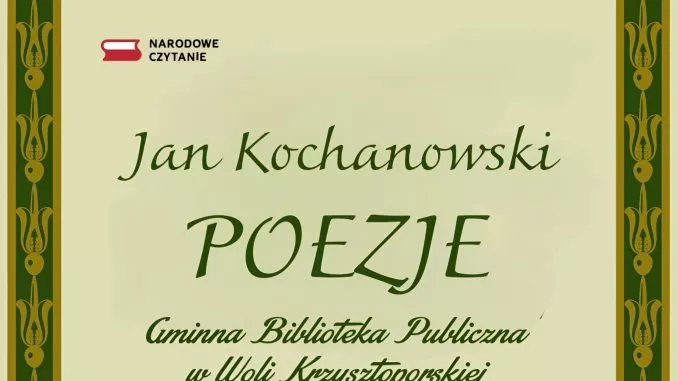 W piątek, 12 września o godz. 10.00 zapraszamy na kolejną odsłonę Narodowego Czytania do Gminnego Ośrodka Kultury w Woli Krzysztoporskiej. Wraz z uczniami Zespołu Szkół Centrum Kształcenia Zawodowego im. Wincentego Witosa w Bujnach zanurzymy się w twórczości Jana Kochanowskiego.
