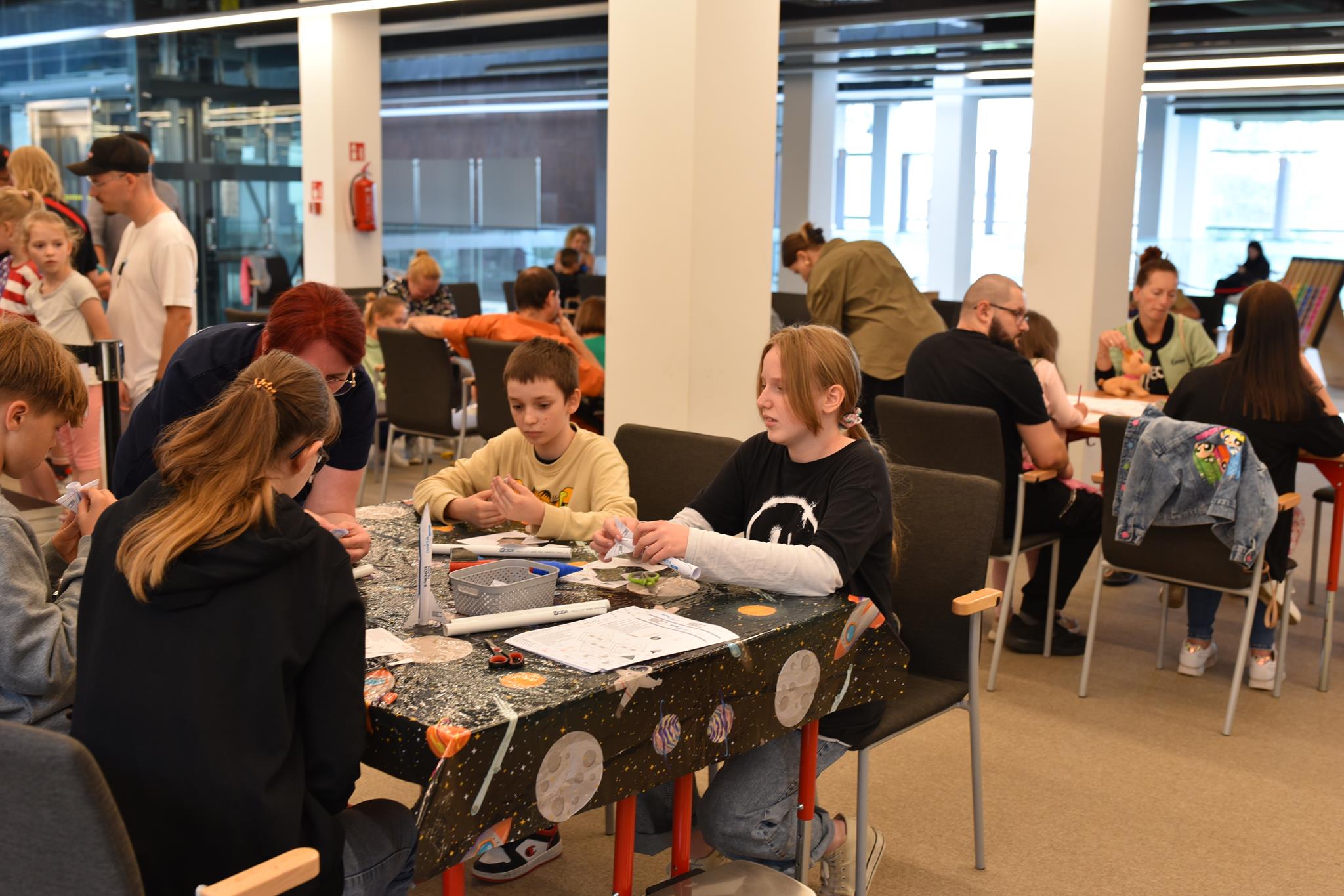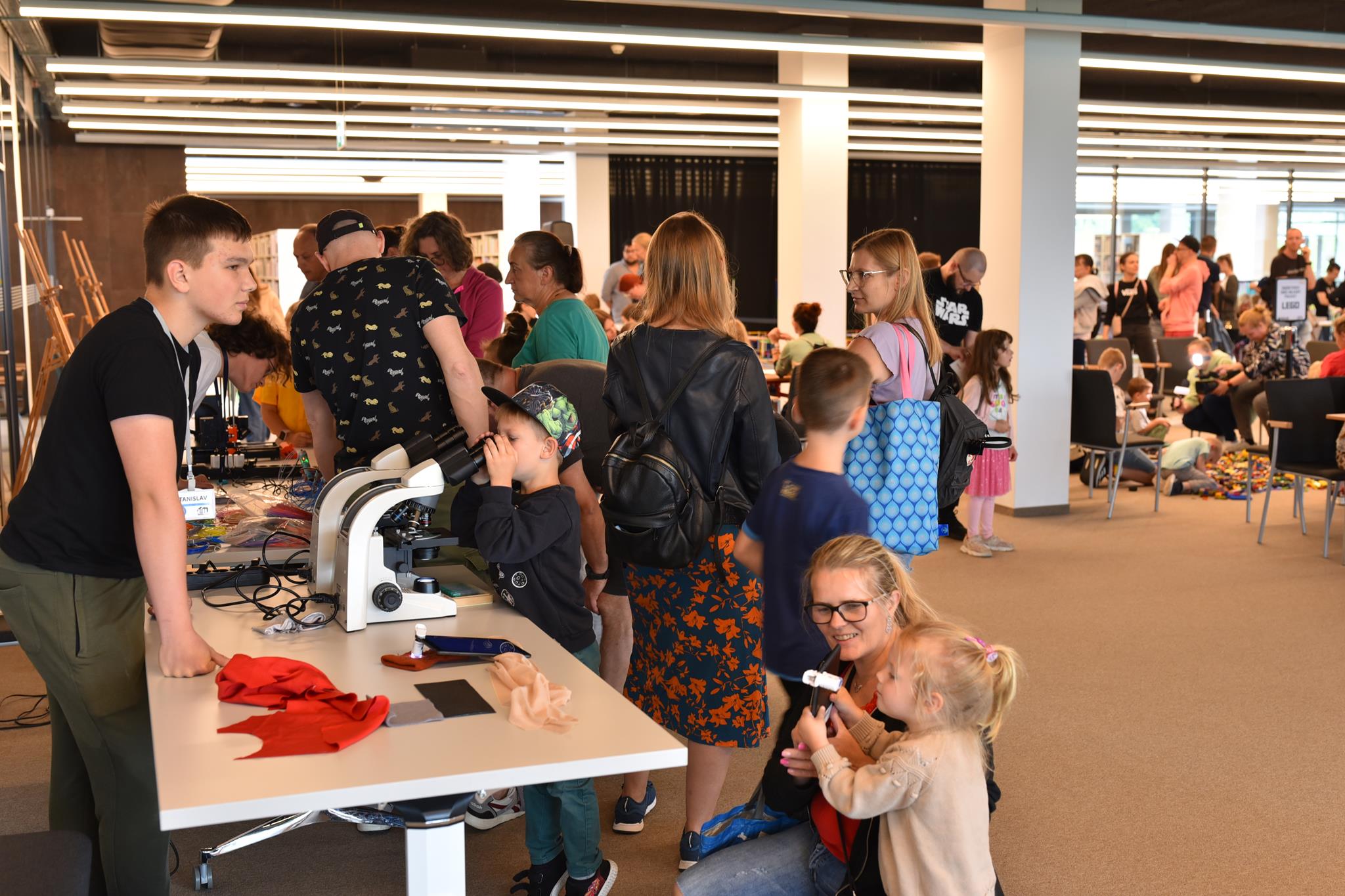 Kolejny wyjątkowy, bo bardzo naukowy Dzień Dziecka za nami. Labirynt z robotami, druk 3D, obserwacja mikroskopowa, zagadki matematycznie i konstrukcyjne, stanowisko ambasadorek edukacji kosmicznej Esero-Polska, klocki LEGO i Korbo, a także kolorowe warkocze, tatuaże i malowane buzie… W piotrkowskiej Mediatece, świetnej rodzinnej zabawie, eksperymentowaniu i zdobywaniu wiedzy nie było końca. Zobaczcie fotorelację z tego wydarzenia, przygotowaną przez pracowników biblioteki.