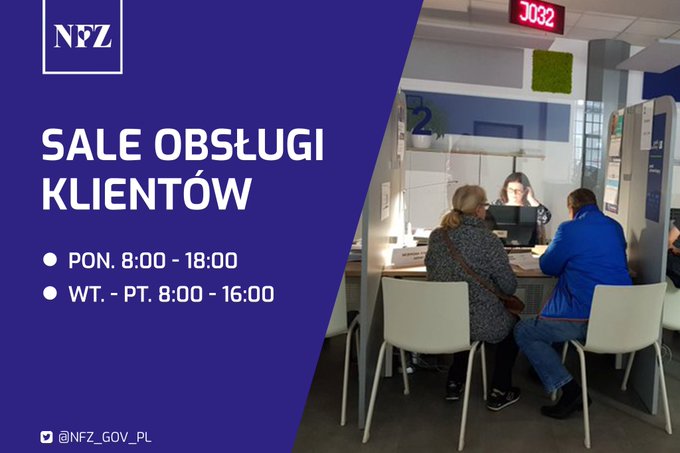 Od dziś (28.11) sale obsługi klientów Narodowego Funduszu Zdrowia w Łodzi, Skierniewicach, Piotrkowie Trybunalskim i Sieradzu będą dla klientów funduszu dostępne w dni robocze w następujących godzinach: