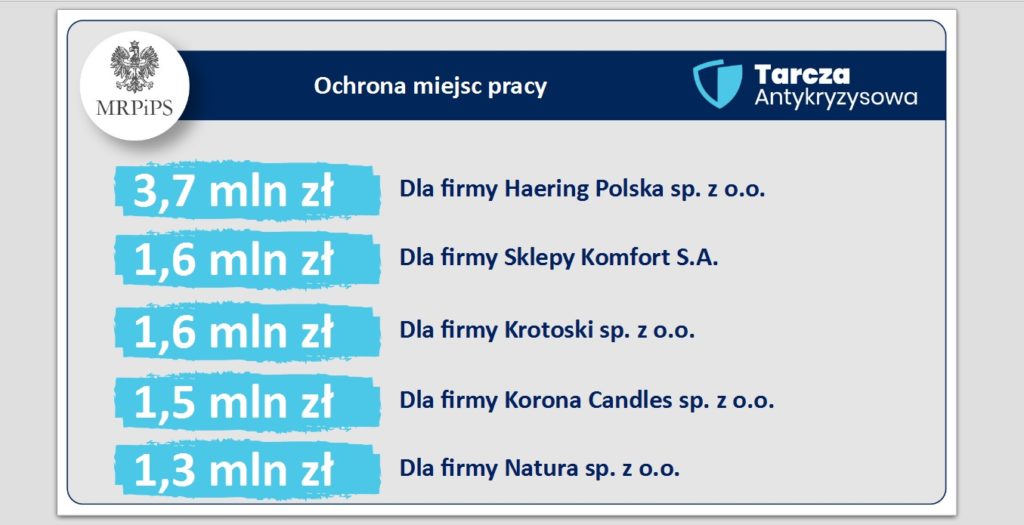 Według dokumentów przedstawionych przez ŁUW, piotrkowska firma Haering jest największym beneficjentem rządowego programu w województwie. Konta Haeringa zasiliło 3,7 miliona złotych.
