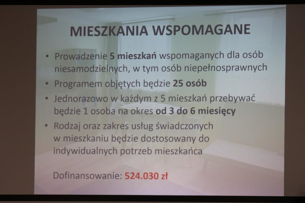 – Nasz projekt był najlepiej oceniony ze wszystkich, które wpłynęły do samorządu województwa a ściślej mówiąc do Wojewódzkiego Urzędu Pracy- chwalił się prezydent miasta Krzysztof Chojniak. – Całkowita wartość projektu to prawie 8 milionów złotych, z czego my jako miasto wykładamy milion złotych. Pozostała kwota to dofinansowanie. Co będziemy realizować za te pieniądze? Jeśli chodzi o Centrum „Szansa” będzie to klub wsparcia dla dzieci i młodzieży niepełnosprawnej, ale również tzw. mieszkania treningowe z celem rehabilitacyjnym, tak by wdrażać wychowanków „Szansy” do samodzielnego życia – dodał prezydent.