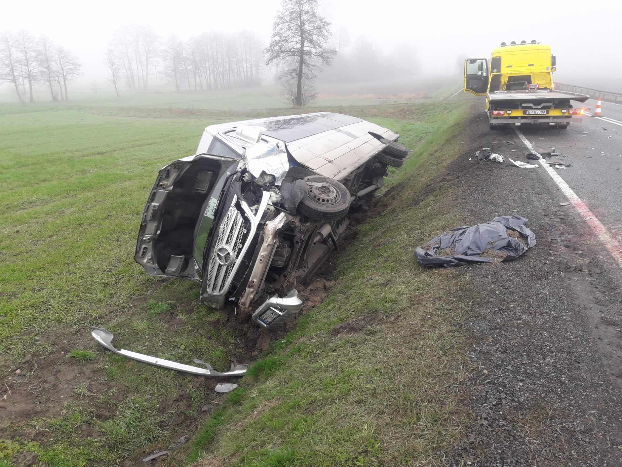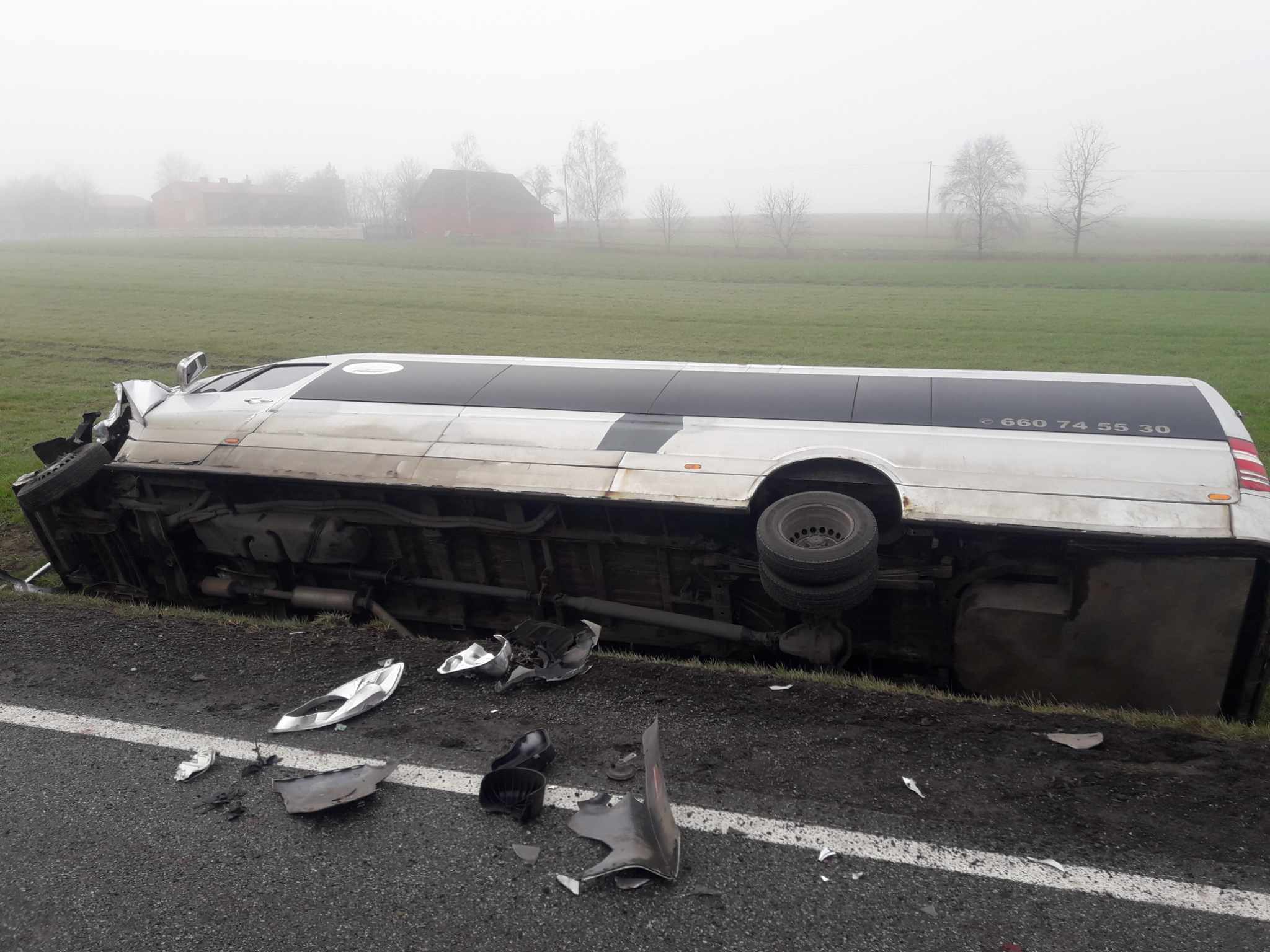 Aktualnie autobus wyciągany jest z rowu a droga zablokowana jest w obu kierunkach. Utrudnienia potrwają do około 11:45.