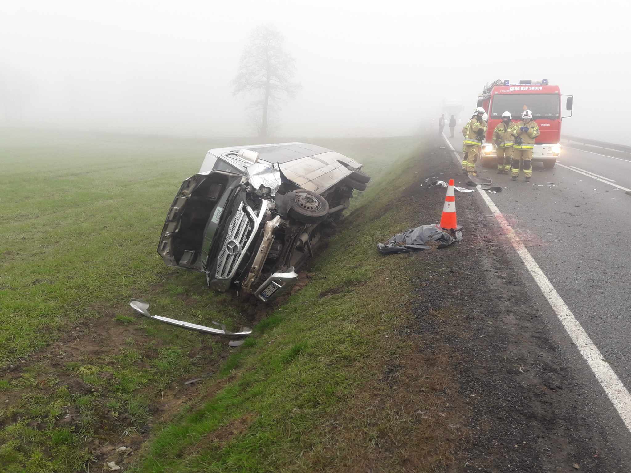 Na DK12/91 na wysokości miejscowości Rękoraj, dziś rano doszło do zderzenia trzech pojazdów, w tym autobusu.