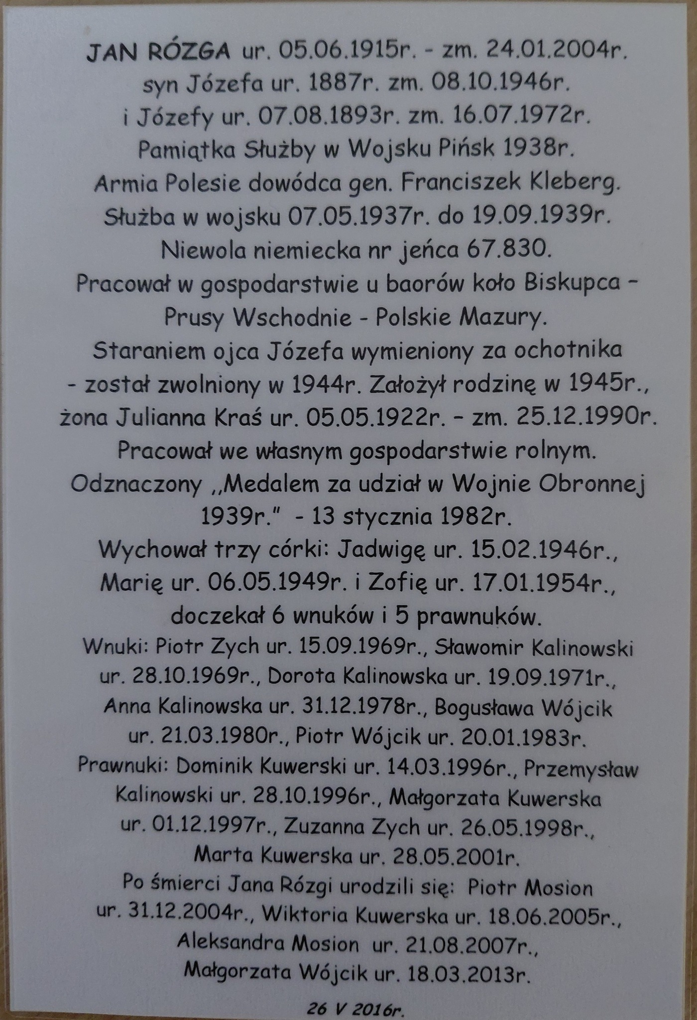 Pani Jadwiga podkreśla, że swoje działania opierała na słowach ojca, Jana Rózgi, który po powrocie z wojny mówił rodzinie, jak ważne jest dbanie o zbiorowe mogiły żołnierzy. On wrócił do bliskich – inni nie mieli tyle szczęścia i często spoczywają daleko od domu, zapomniani…