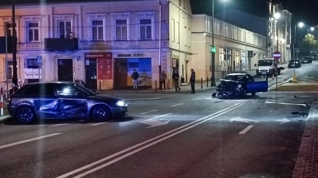 Do zderzenia forda i audi doszło w nocy z soboty na niedziele na skrzyżowaniu ulic Narutowicza i Sienkiewicza w Piotrkowie. Do szpitala na obserwacje trafiły dwie osoby.