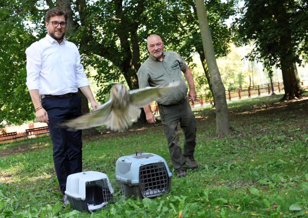 – Przyszedł czas rozstania, ale to jest bardzo miłe, kiedy zwierzęta wracają do środowiska naturalnego. Jak widać, udała się rehabilitacja sów, obie latają świetnie. Mamy taką cichą nadzieję, że właśnie w parku Belzackim osiedlą się i zadomowią, i będą polować na myszy, bo ten gatunek jest ściśle związany z gryzoniami – opowiadał Paweł Kowalski, leśniczy z leśnej osady Nadleśnictwa Piotrków.