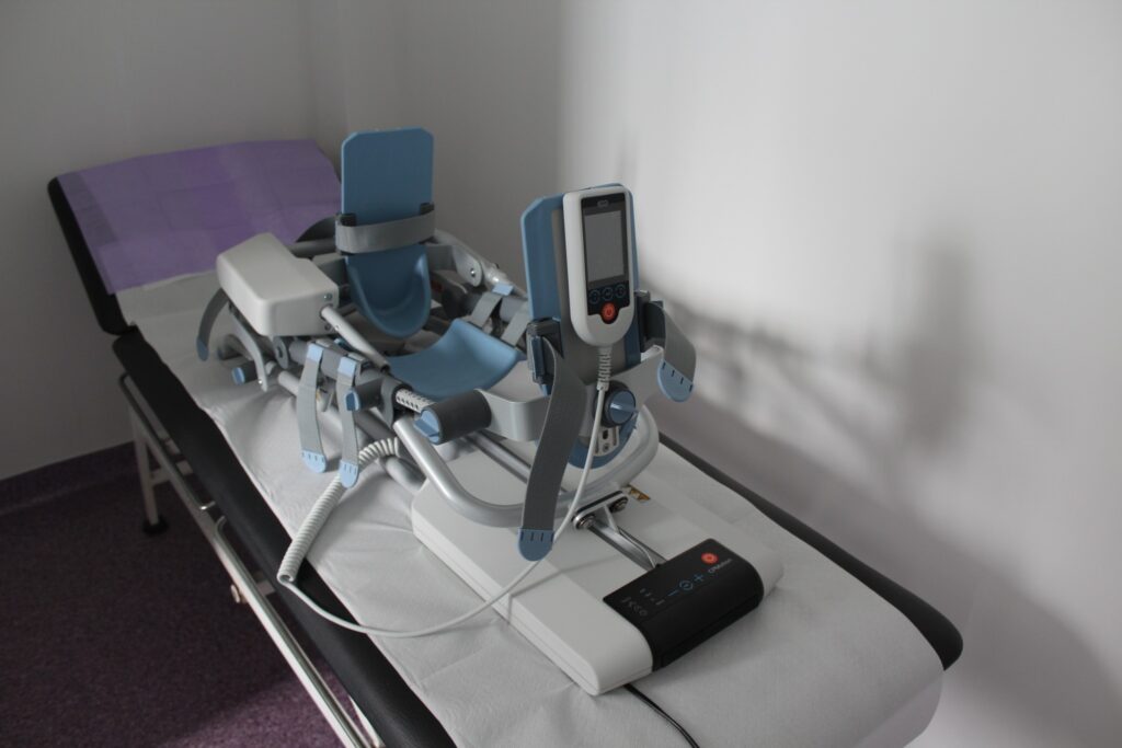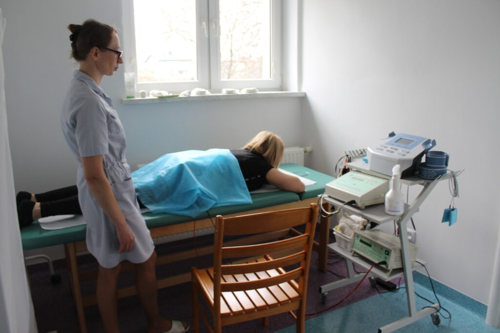 Gabinet fizjoterapii w Grabicy został kompleksowo wyposażony w nowoczesny sprzęt rehabilitacyjny, który umożliwia prowadzenie szerokiego zakresu terapii w warunkach ambulatoryjnych. Dzięki temu możliwa jest kompleksowa rehabilitacja i leczenie wielu schorzeń wymagających specjalistycznych zabiegów fizjoterapeutycznych. Gabinet wyposażony jest w: