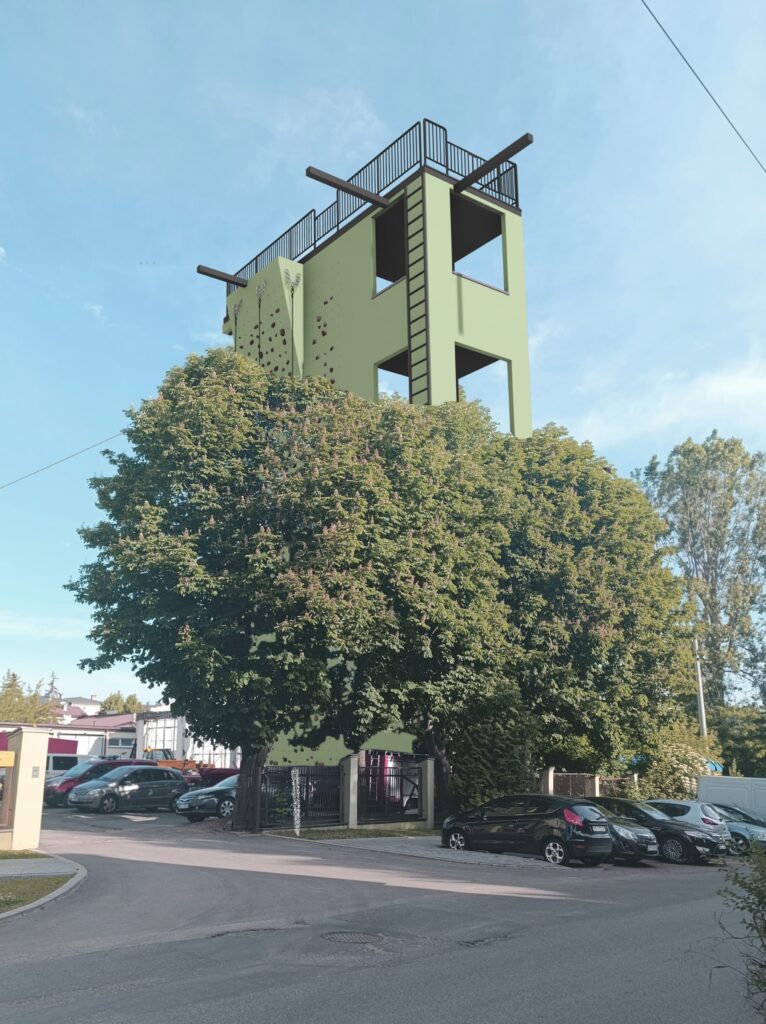 - Ściankę wspinaczkową, która pozwoli na doskonalenie technik wspinaczkowych