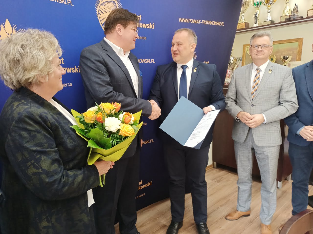 Starosta Powiatu Piotrkowskiego Piotr Wojtysiak wręczając akt powołania, gratulując wyraził oczekiwania Zarządu Powiatu wobec nowego dyrektora, a jednym z wyzwań jakie czeka PCMD to wdrożenie rozwiązań systemowych zapowiadanych przez rząd w planowanej ustawie o modernizacji i poprawie efektywności szpitalnictwa.