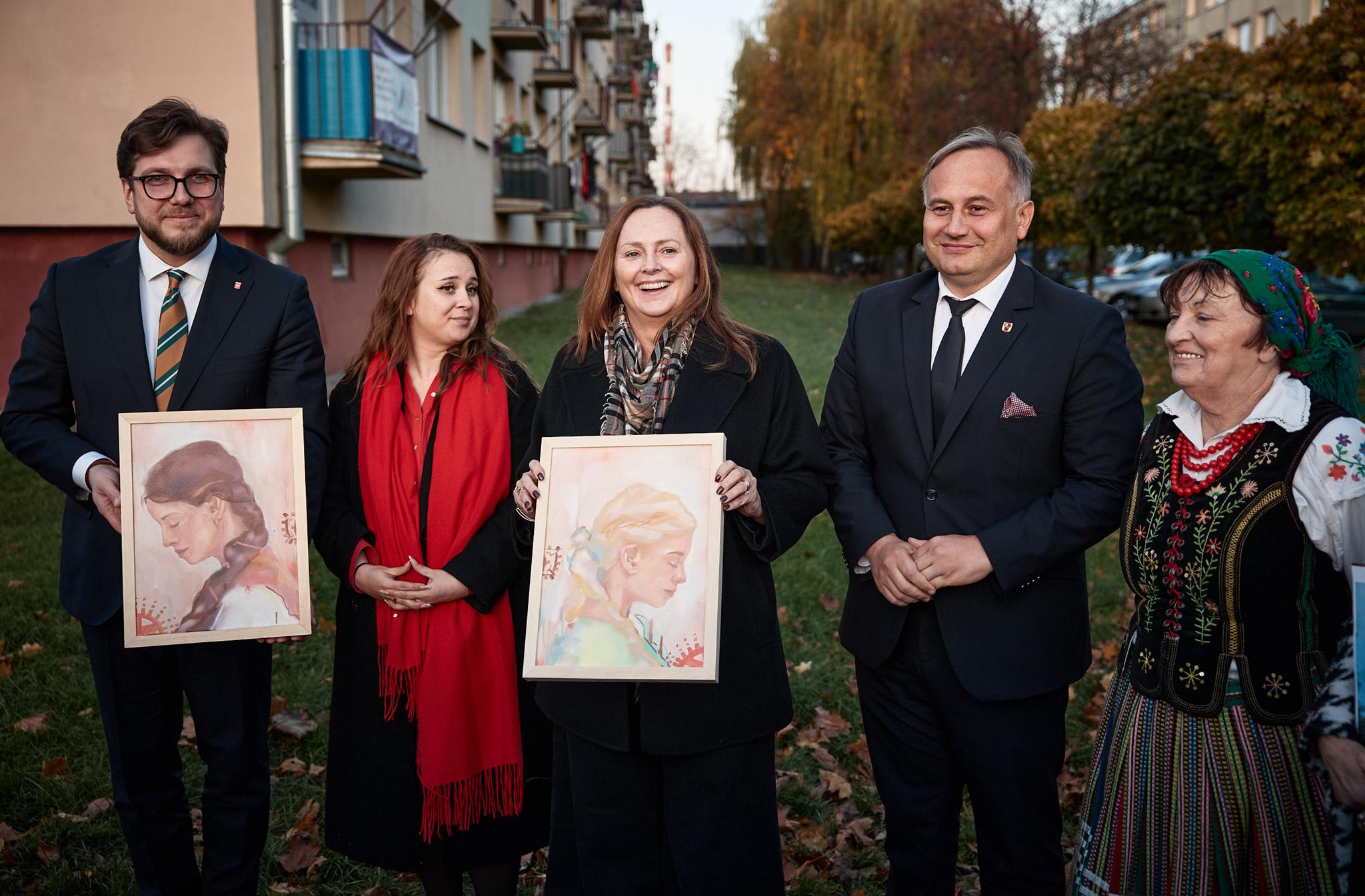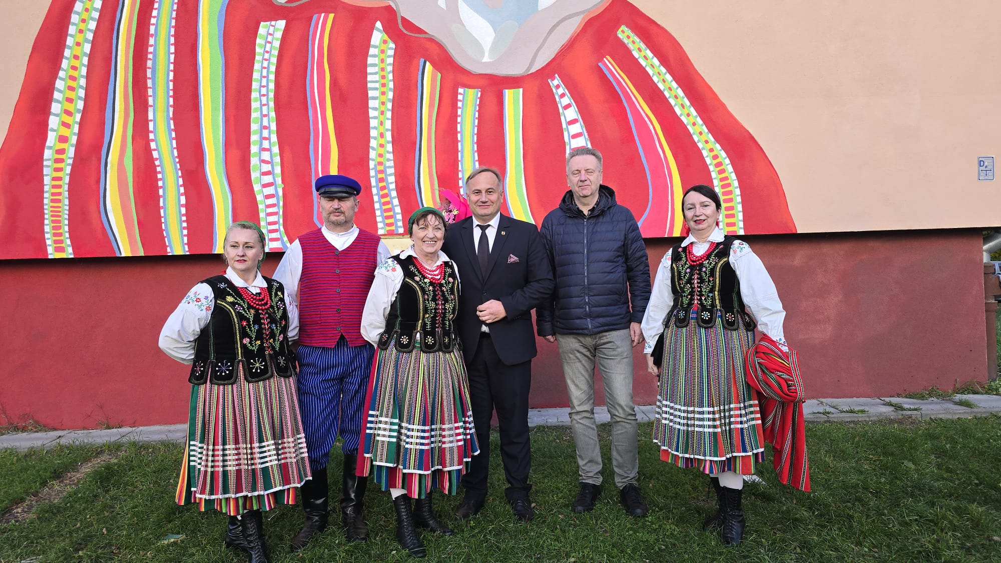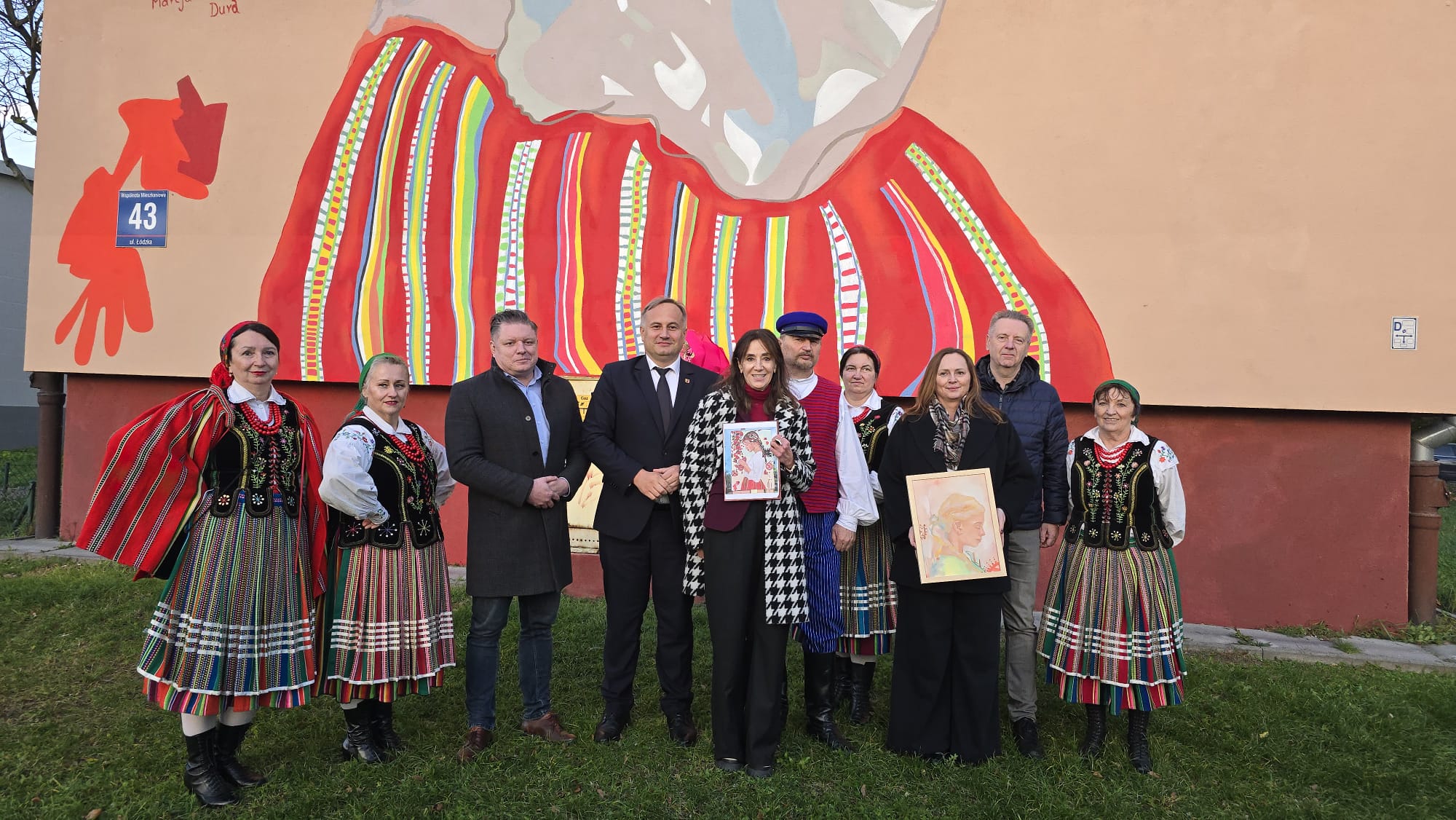 W środę, 29 października, odbyło się oficjalne oddanie muralu. Dzieła – twórcom i mieszkańcom – gratulowali Joanna Skrzydlewska, marszałek województwa łódzkiego i wicemarszałek Piotr Wojtysiak oraz Jacek Sokalski, radny sejmiku województwa łódziego, W wydarzeniu wzięli też udział członkowie zespołu ludowego „Piotrkowianie” – tej okazji specjalnie ubrani w ludowe stroje.