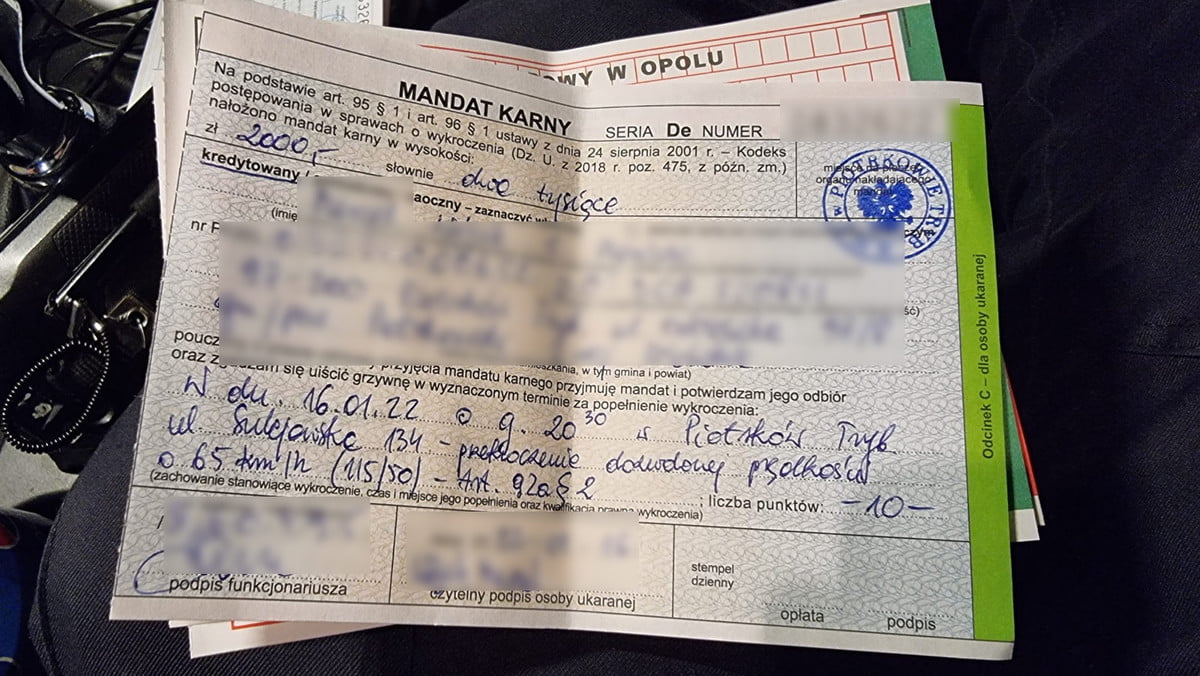 16 stycznia 2022 roku piotrkowscy policjanci przeprowadzali pomiar prędkości na terenie miasta. O godzinie 20:30 na ulicy Sulejowskiej zatrzymali do kontroli seata, którego kierowca przekroczył prędkość. W obszarze zabudowanym mężczyzna jechał z prędkością 115 km/h. 18-letni piotrkowianin uprawnienia do kierowania pojazdami posiadał od listopada 2021 roku. W związku z popełnionym wykroczeniem został ukarany mandatem karnym w wysokości 2000 złotych. Otrzymał również 10 punktów karnych.