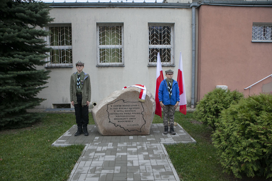 Tegoroczne Święta Niepodległości połączone zostały z otwarciem jednej z najważniejszych gminnych inwestycji – Moszczenickich Terenów Inwestycyjnych. Obchody rozpoczęła msza św. w kościele parafialnym pw. Podwyższenia Krzyża Świętego oraz koncert pieśni patriotycznych w wykonaniu scholii Hosanna. Druga część uroczystości odbyła się przed Gminnym Ośrodkiem Kultury, gdzie delegacje w asyście pocztów sztandarowych złożyły kwiaty pod pamiątkowym obeliskiem. Odczytano również uchwałę Rady Gminy nadającą nazwę 100-lecia Odzyskania Niepodległości ulicy przy Gminnym Ośrodku Kultury, która biec będzie przez całe MTI.