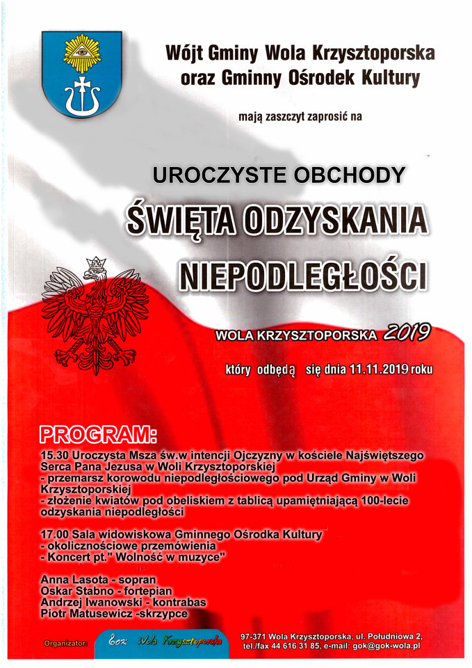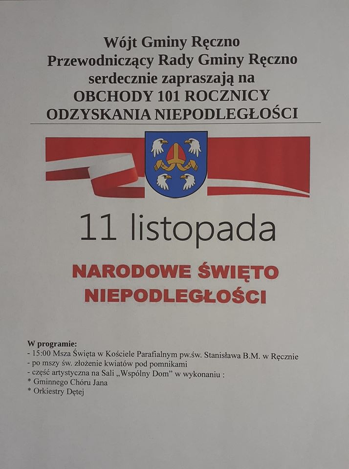 11 listopada w wielu gminach powiatu odbywać się będą uroczystości związane ze 101. rocznicą odzyskania przez Polskę niepodległości. Na ten dzień zaplanowano pikniki historyczne i uroczyste akademie.