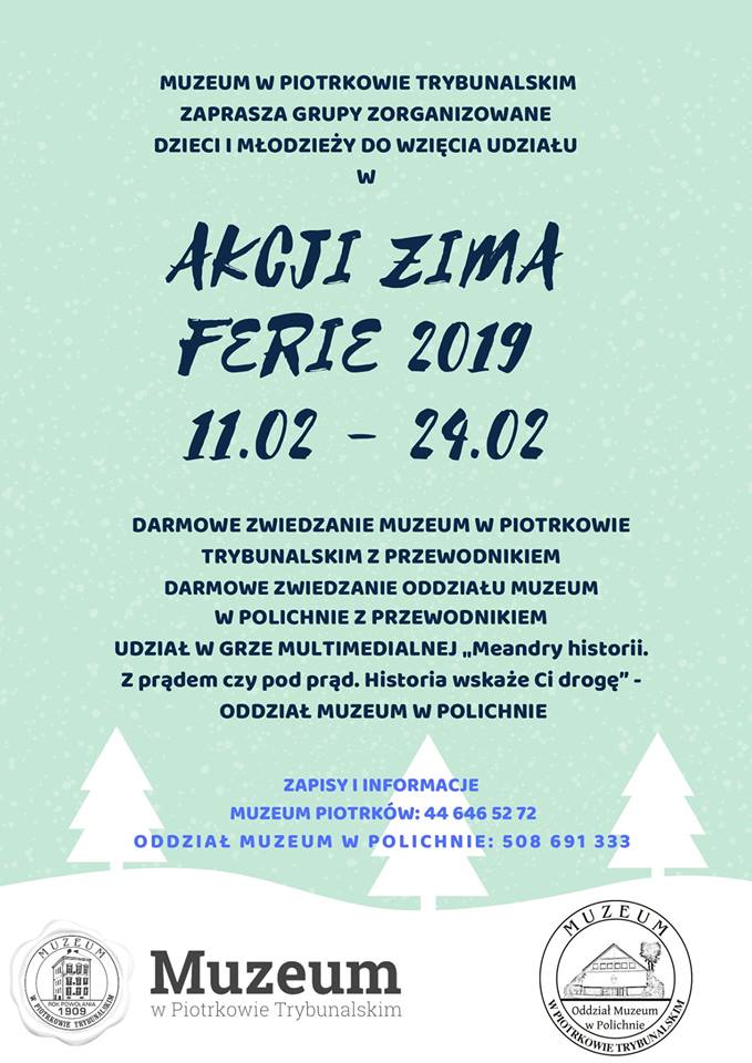 Więcej informacji oraz zapisy: Muzeum w Piotrkowie Trybunalskim – 44 646 52 72 lub Oddział Muzeum w Polichnie – 508 691 333.