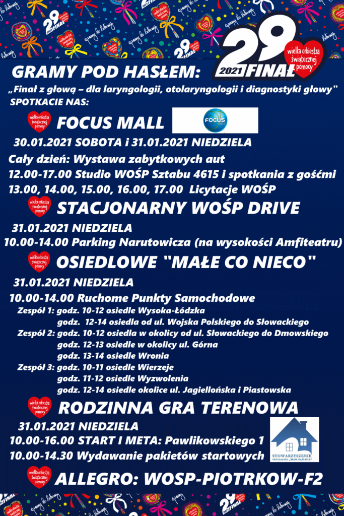 Już w ten weekend odbywa się 29. Finał Wielkiej Orkiestry Świątecznej Pomocy. Finał z głową – takie jest hasło przewodnie tegorocznej zbiórki. Tym razem Fundacja skupia się na zakupie sprzętu dla laryngologii, otolaryngologii i diagnostyki głowy. Jest to już drugi Finał WOŚP dedykowany laryngologii. Orkiestra w Piotrkowie ma dwa sztaby. My odwiedziliśmy ten zlokalizowany w galerii Focus Mall.