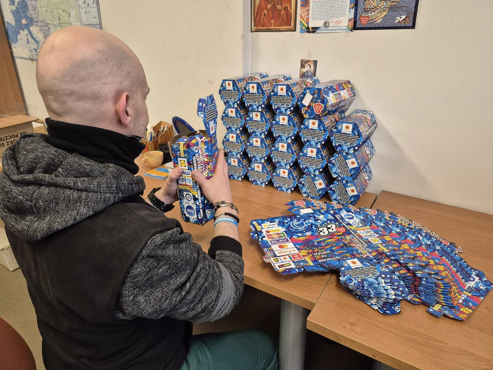 – “Robota” idzie w miarę szybko, bo czas potrzebny na złożenie jednej sztuki to około 30 sekund. Nie mamy specjalnego systemu składania puszek. Na pewno najpierw trzeba złożyć zgodnie z linią zagięć, potem złożyć i pospinać. Najpierw ścianki boczne, potem dno i górę – mówił przed rokiem w rozmowie z nami jeden z osadzonych. – Pomagamy, bo chcemy wesprzeć Wielką Orkiestrę Świątecznej Pomocy w taki sposób jaki możemy. Ciężko byłoby wspomóc akcje finansowo, ale bardzo chętnie pomagamy tak jak możemy – dodał mężczyzna.