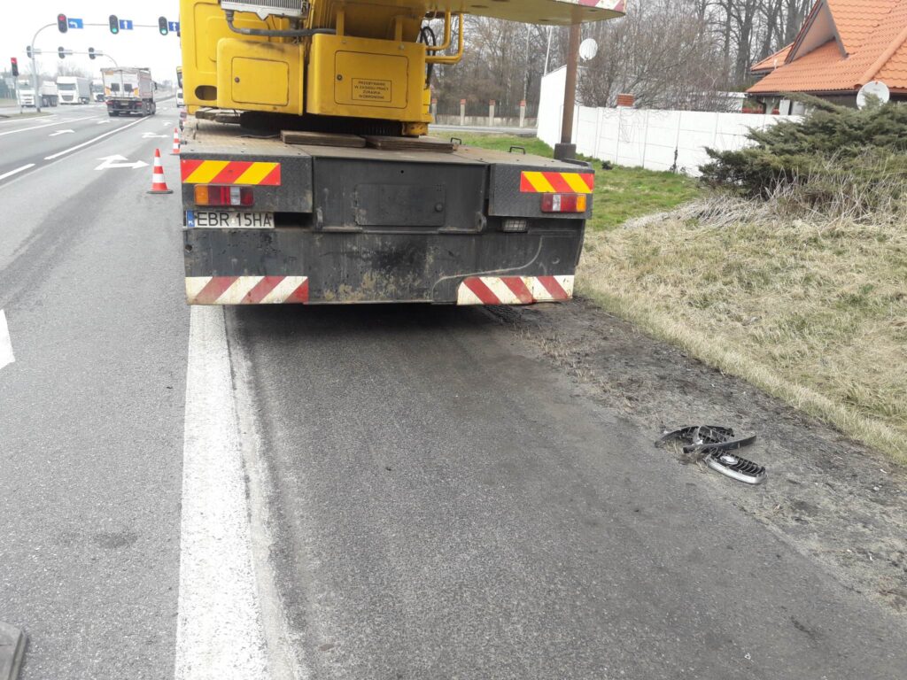 Pomiędzy Piotrkowem a Łodzią osobówka zderzyła się z samochodem ciężarowym. W wyniku kraksy, pasażerka bmw ma złamaną nogę i trafiła do szpitala. Kierowcy dźwigu nic się nie stało. Utrudnienia w kierunku Łodzi trwały około 3 godzin.
