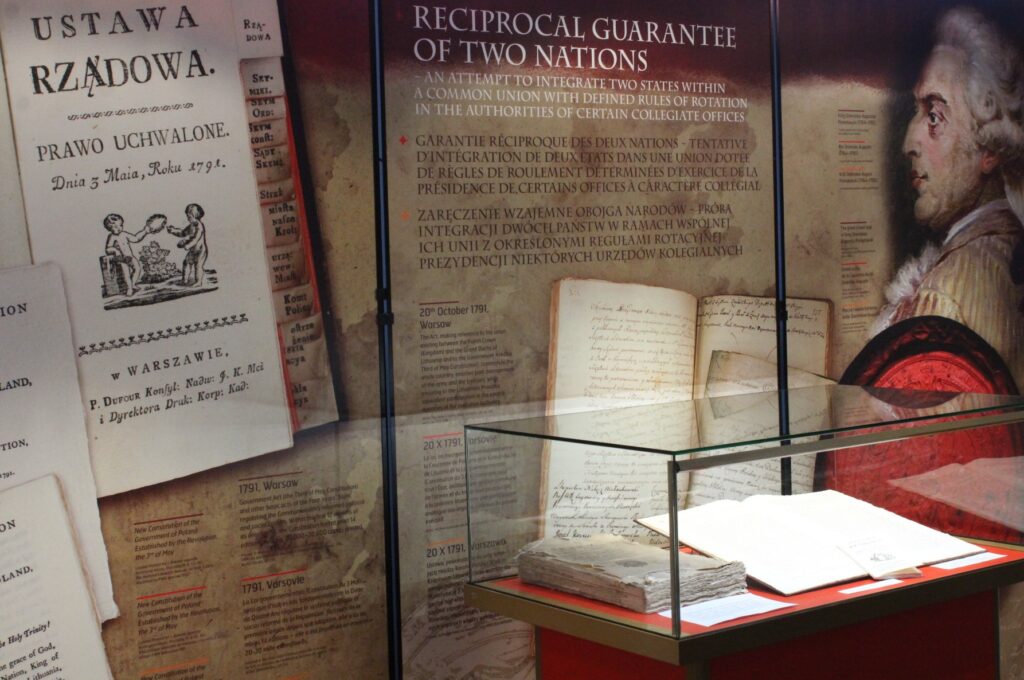 Dzięki uprzejmości Archiwum Państwowego w Piotrkowie Trybunalskim możliwe było pokazanie okazałej księgi wpisów na wierność Konstytucji 3 maja, w której przysięgę poświadczyli piotrkowscy mieszczanie członkowie rady miasta i cechów rzemieślniczych na czele z najwyśmienitszymi obywatelami Piotrkowa i prezydentem Aleksandrem Watsonem. Biblioteka Sejmowa w Warszawie udostępniła natomiast kopie laski marszałkowskiej Stanisława Małachowskiego. Wystawa przygotowana we współpracy z Archiwum Państwowym w Piotrkowie Trybunalskim oraz Biblioteką Sejmowa w Warszawie udostępniana jest zwiedzającym od 5 maja do końca lipca 2021 r.