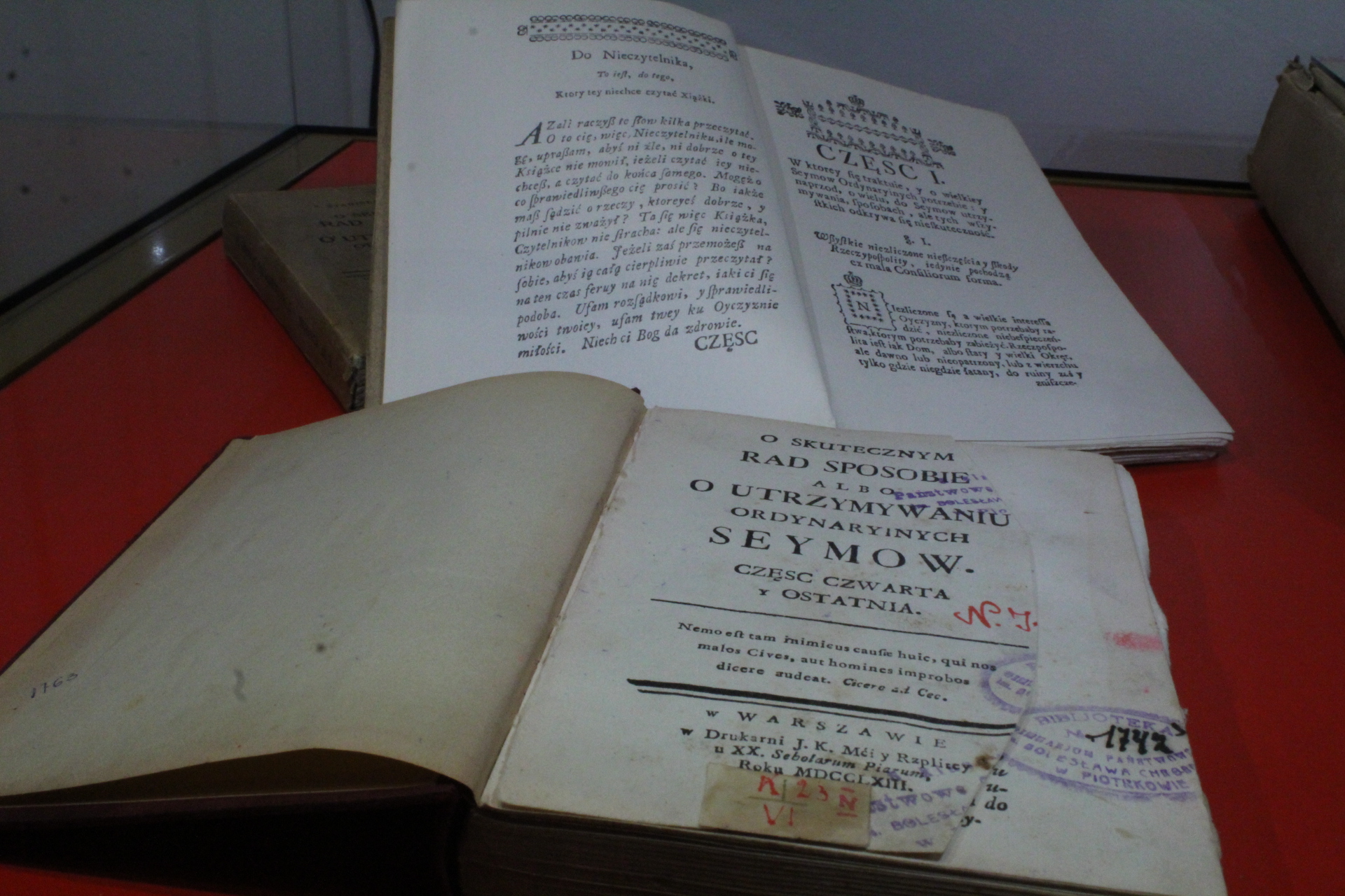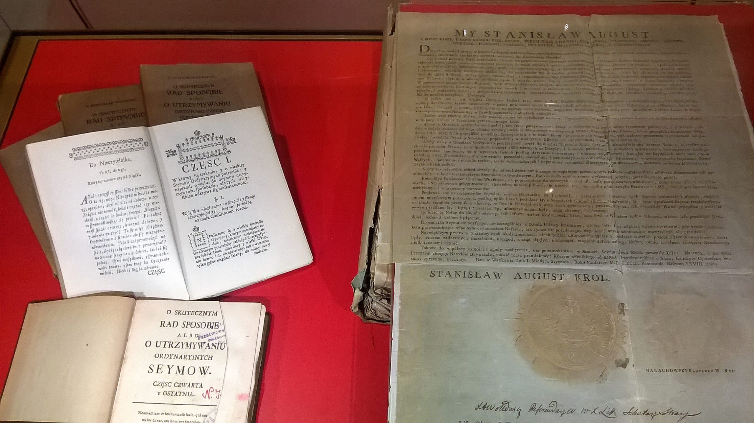 Na wystawie zgromadzone zostały liczne archiwalia z epoki stanisławowskiej. Pośród oryginalnych konstytucji sejmowych z okresu panowania Stanisława Augusta Poniatowskiego zaprezentowany został też reprint rękopisu i pierwszego wydania Konstytucji 3 maja oraz numizmaty ze zbiorów Muzeum w Piotrkowie Trybunalskim. Ciekawostką są z pewnością pieczęć Stanisława Augusta Poniatowskiego, czy opłatkowa pieczęć właściciela dóbr Moszczenica – Stanisława Małachowskiego, który zanim wybrany został marszałkiem Sejmu Wielkiego, pełnił funkcję marszałka Trybunału Koronnego.