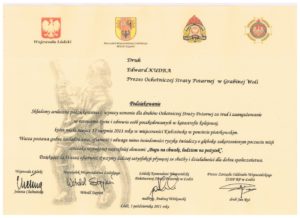 W Dniu Strażaka, 1 maja 2016 r., medalami zostali odznaczeni: Jacek Bogołębski i Dariusz Białowąs (brązowym), Sławomir Duk (odznaką „Strażak Wzorowy”).