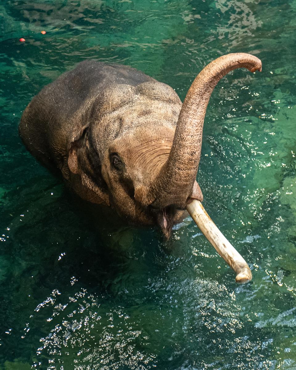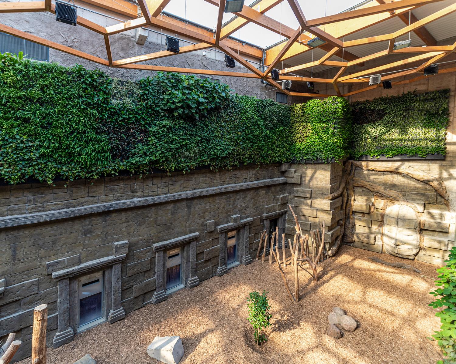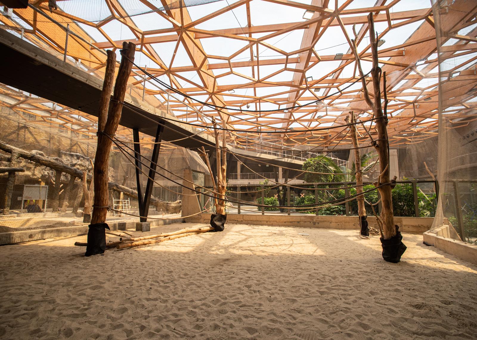 Część ekspozycyjna została podzielona na 4 części. W pierwszej z nich – słoniarni – zobaczymy największego słonia indyjskiego w Europie, Aleksandra oraz jego młodszego kolegę, Taru. Tutaj też znajduje się strefa wolnych lotów. Nad głowami latają między innymi czapelki złotawe.