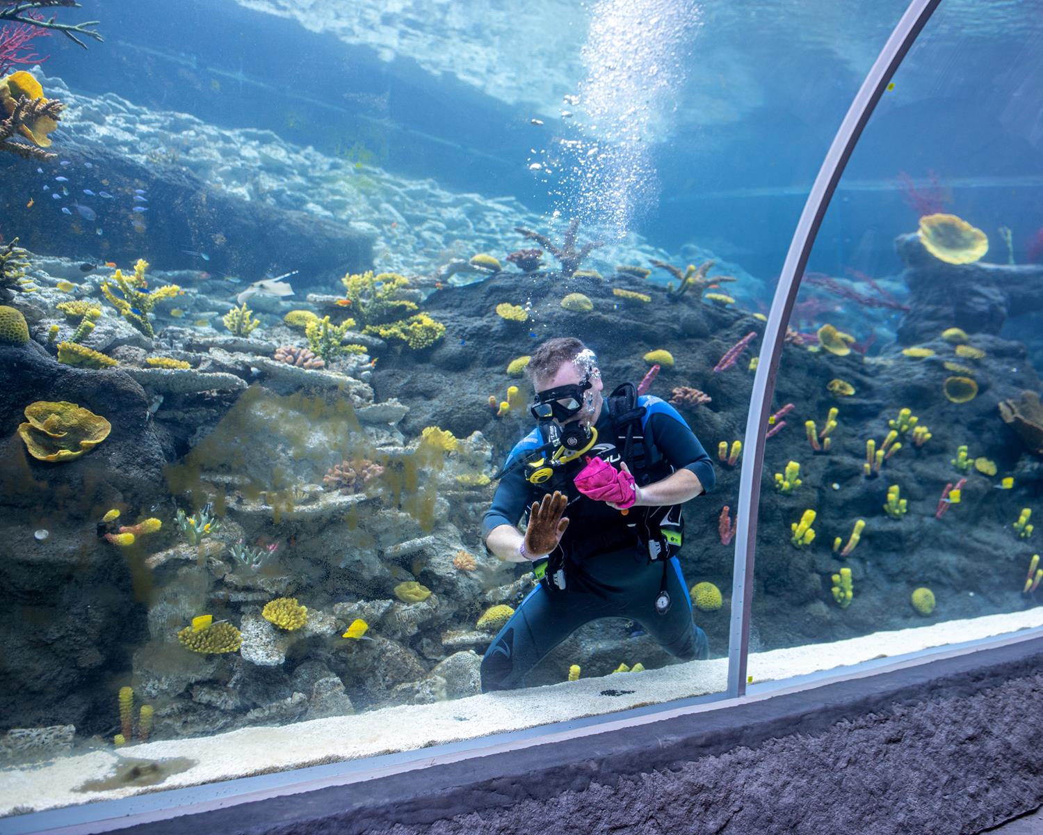 W kolejnej części – oceanicznej – znajduje się około 1300 ryb, w tym rekiny, rzadko spotykane riny gitarowe, rekiny brodate, żarłacze rafowe czarnopłetwe oraz płaszczki – orlenie plamiste i Himantury. Gatunki te można podziwiać z poziomu największego w Polsce podwodnego tunelu. W mniejszych zbiornikach pływają między innymi koniki morskie, rogatnice, rozdymki oraz apogony.