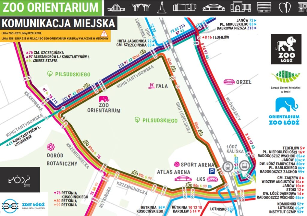 Zoo – takie oznaczenie będzie miała specjalna bezpłatna linia autobusowa, która zapewni najlepszy transport przyjeżdżającym do Łodzi. Autobus kursować będzie przez cały tydzień co 15 minut na trasie: Sport Arena P&R – al. Bandurskiego, ul. Krzemieniecka, ul. Konstantynowska – Zoo Orientarium – ul. Konstantynowska, al. Unii Lubelskiej – Sport Arena P&R. Bez korków i poszukiwania miejsca parkingowego pod Orientarium wszyscy odwiedzający będą mogli za darmo w ciągu kilku minut podjechać pod samo wejście do ogrodu zoologicznego.