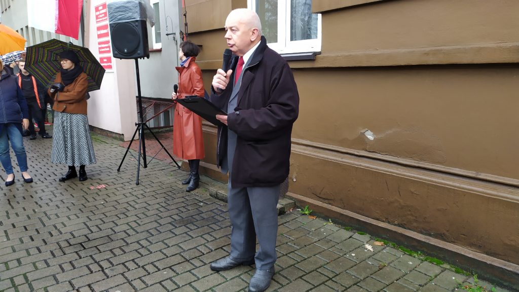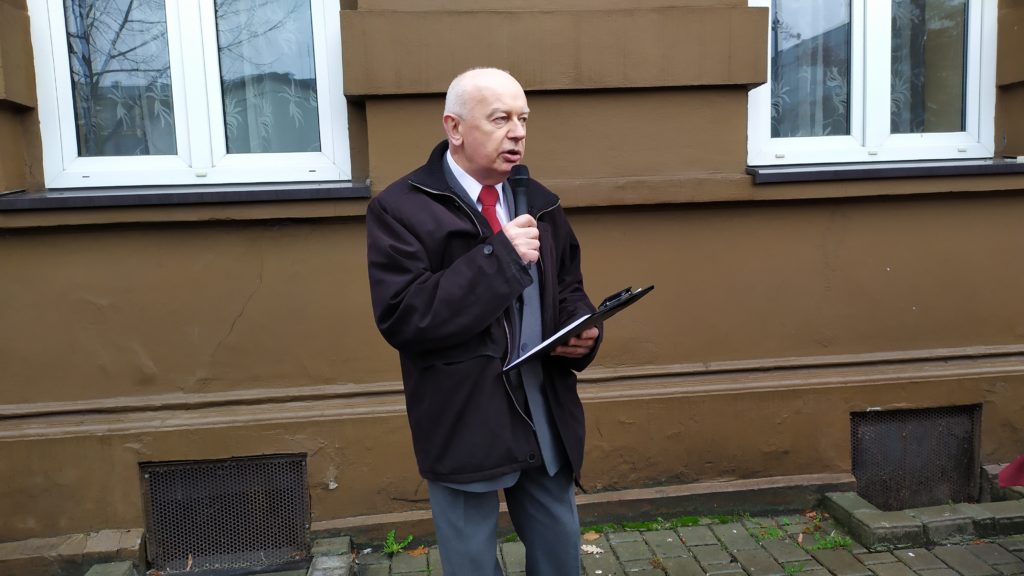 Pierwsza tablica umieszczona była na frontonie budynku 28 lat temu. Wykonana była z brązu, co niestety przyciągnęło złomiarzy którzy ukradli ją i prawdopodobnie sprzedali w jednym ze skupów metali kolorowych. – Wiele razy pytano nas gdzie jest tablica. Po latach, zdecydowaliśmy się zrobić następną – mówi Waldemar Domarańczyk, prezes TPPT, który podczas odsłonięcia tablicy, przypomniał historię strajku. – 1 grudnia 1905 roku, rozpoczęła strajk młodzież gimnazjum męskiego (dzisiejsze I LO). Kilka godzin później, do swoich kolegów, dołączyły uczennice z gimnazjum żeńskiego (wtedy była to pensja Henryki Domańskiej, później Heleny Trzcińskiej, a dzisiaj II LO). Tak się zaczął ten strajk. Przyszły prześladowania i więzienia. Kiedy wydawało się, że po walce młodzieży nic nie zostało, do carskich władz okupacyjnych dotarło, że muszą zrobić pewien gest w stosunku do mieszkańców Piotrkowa, i dwa lata później, w 1907 roku, w tym budynku rozpoczęła pracę Szkoła Polska – powiedział W.Domarańczyk.