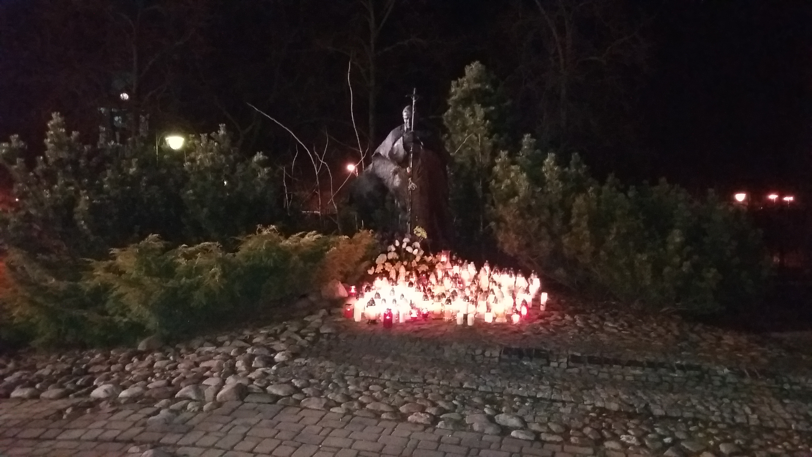 Kilkadziesiąt osób zgromadziło się przed pomnikiem św. Jana Pawła II, by uczcić 13. rocznicę śmierci papieża. Wierni, punktualnie o 21:37 odśpiewali „Barkę” – ulubioną pieśń Karola Wojtyły.