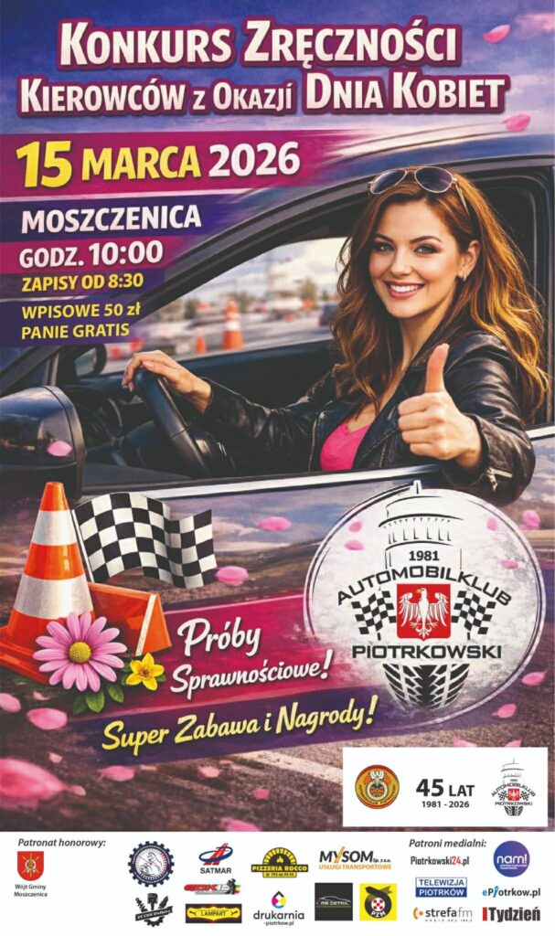 Pasja, ryk silników i sportowa rywalizacja w najlepszym wydaniu – tak zapowiada się nadchodząca KZK w Moszczenicy. Automobilklub Piotrkowski zaprasza wszystkich miłośników motoryzacji na wyjątkowy Konkurs Zręczności Kierowców, organizowany z okazji Dnia Kobiet.