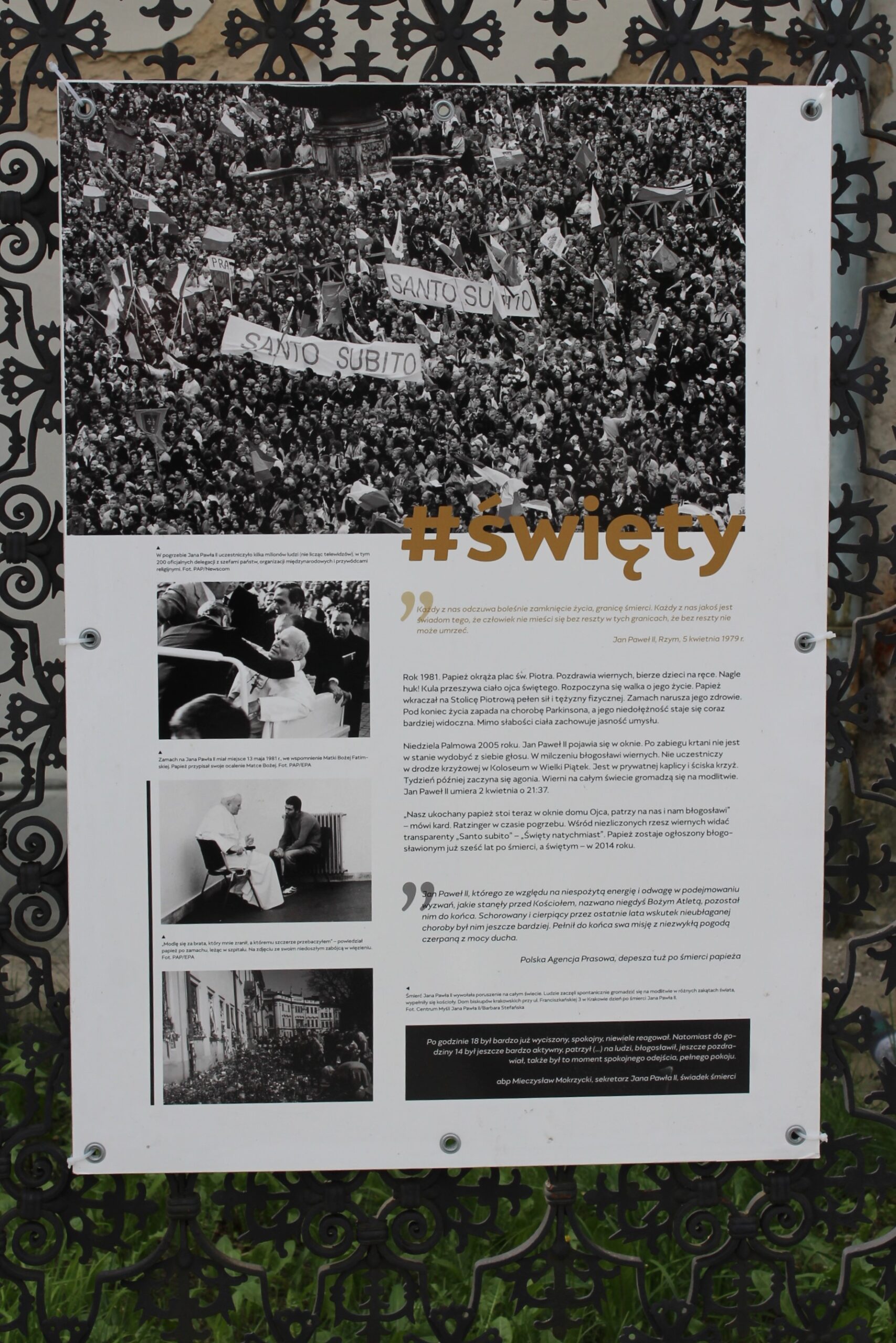 W nawiązaniu do tych faktów oraz w związku z przypadającą w tym roku dziesiątą rocznicą kanonizacji Jana Pawła II, prezentowana jest na parkanie klasztoru o.o. Bernardynów w Piotrkowie przy ul. Słowackiego, plenerowa wystawa opowiadająca o życiu papieża Polaka.