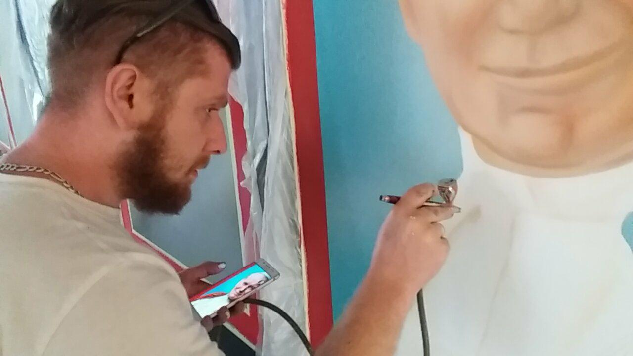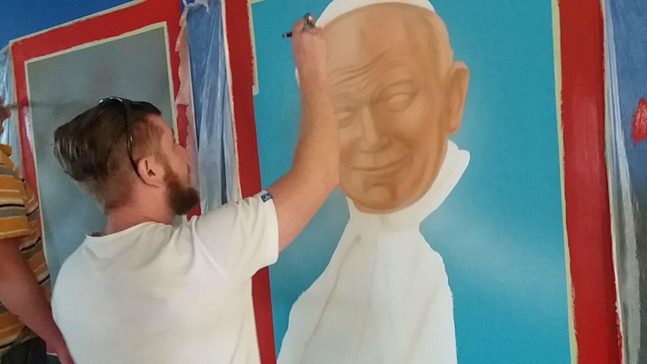 Mural maluje dwóch artystów z Wrocławia. – Metodą aerografu powstają podobizny czterech wielkich Polaków: Jana Pawła II, marszałka Józefa Piłsudskiego, gen. Ludwika Czyżewskiego i rotmistrza Witolda Pileckiego. Prace prawdopodobnie zakończa się dziś – mówi Zbigniew Ziemba, dyrektor szkoły.