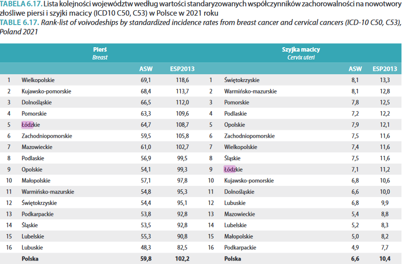 Łódzkie z wysokim współczynnikiem zachorowalności na kobiece nowotwory*