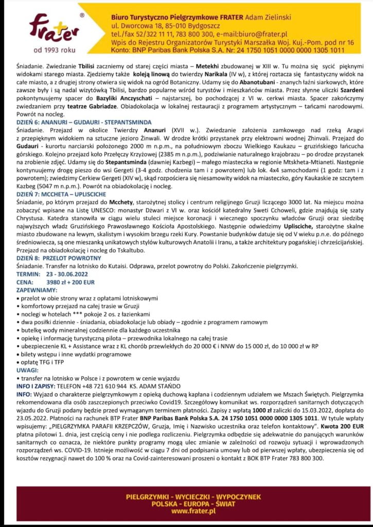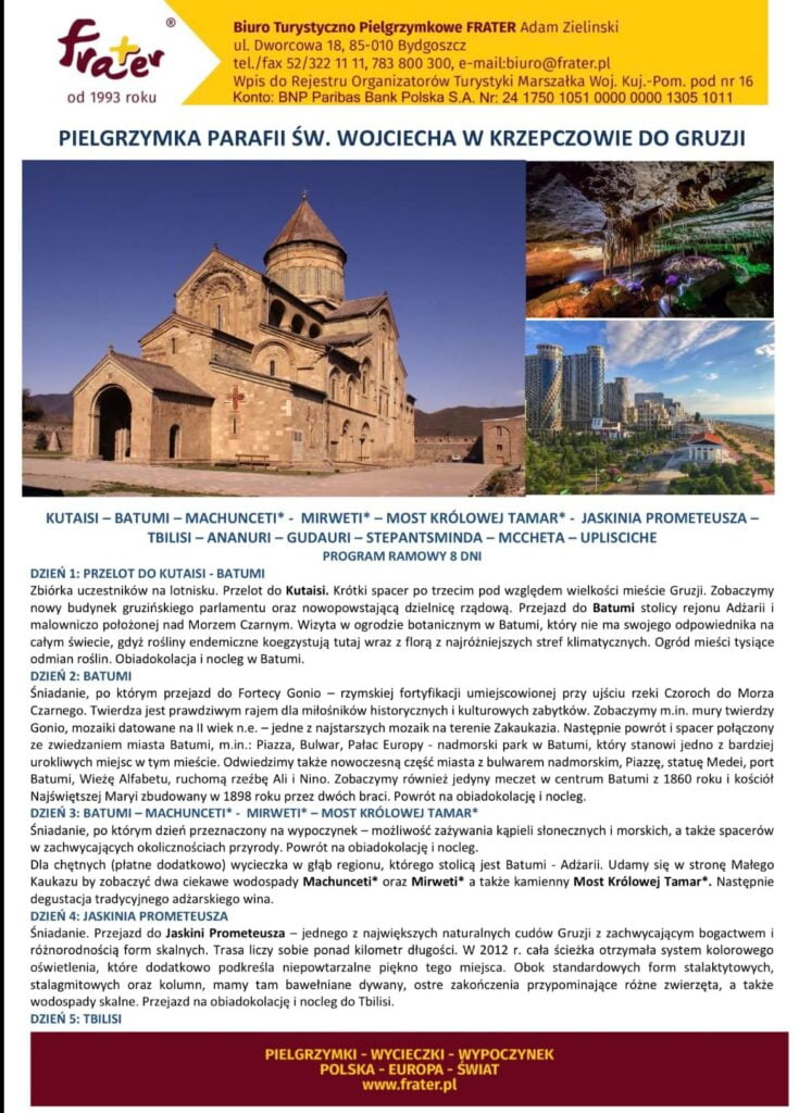 Parafia w Krzepczowie zaprasza do wzięcia udziału w pielgrzymce do Gruzji.