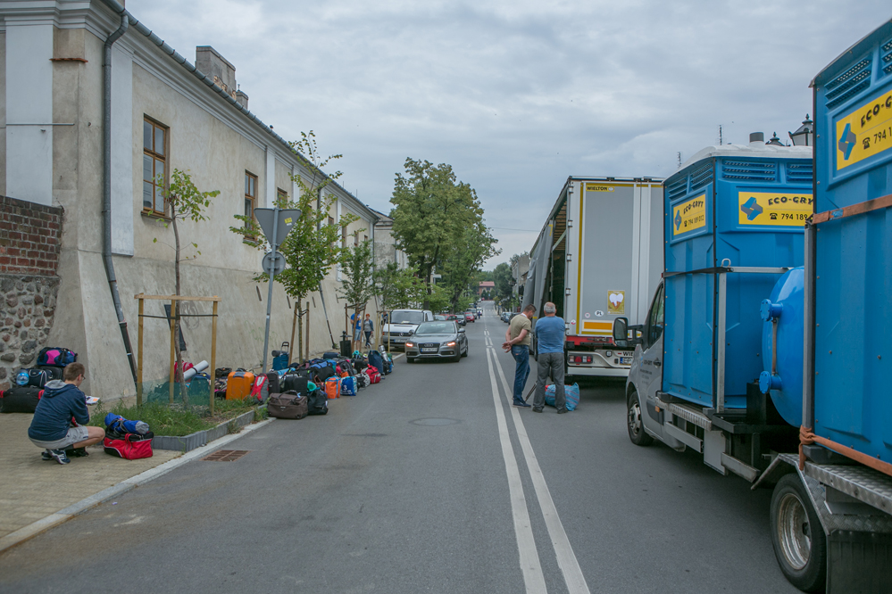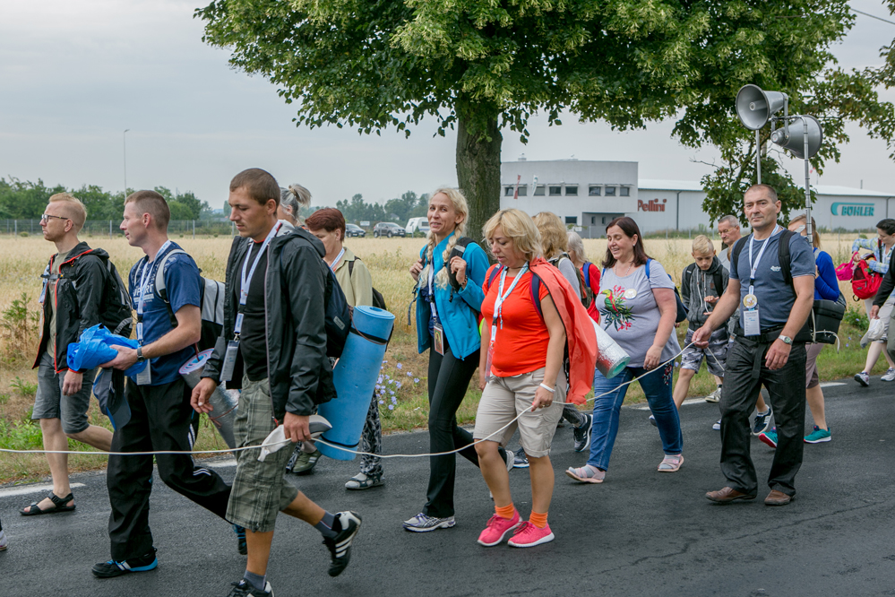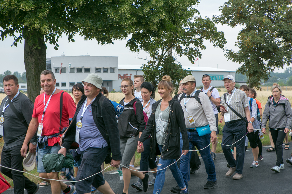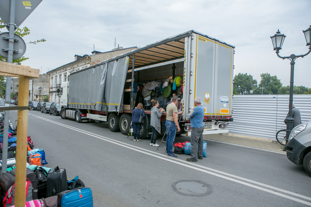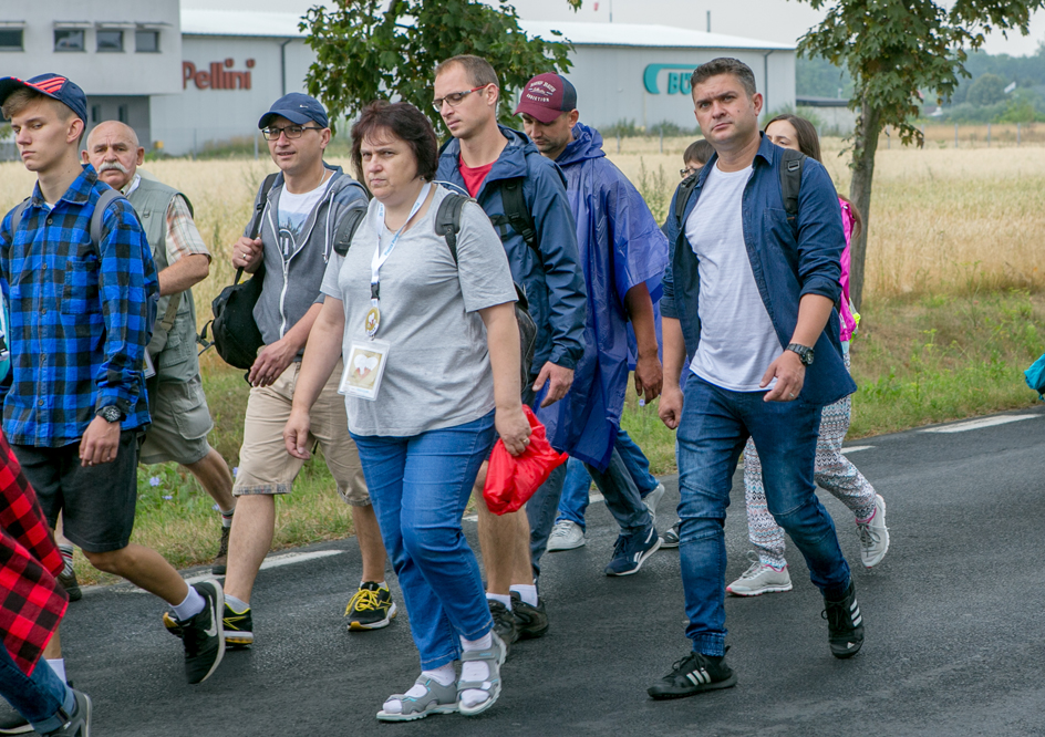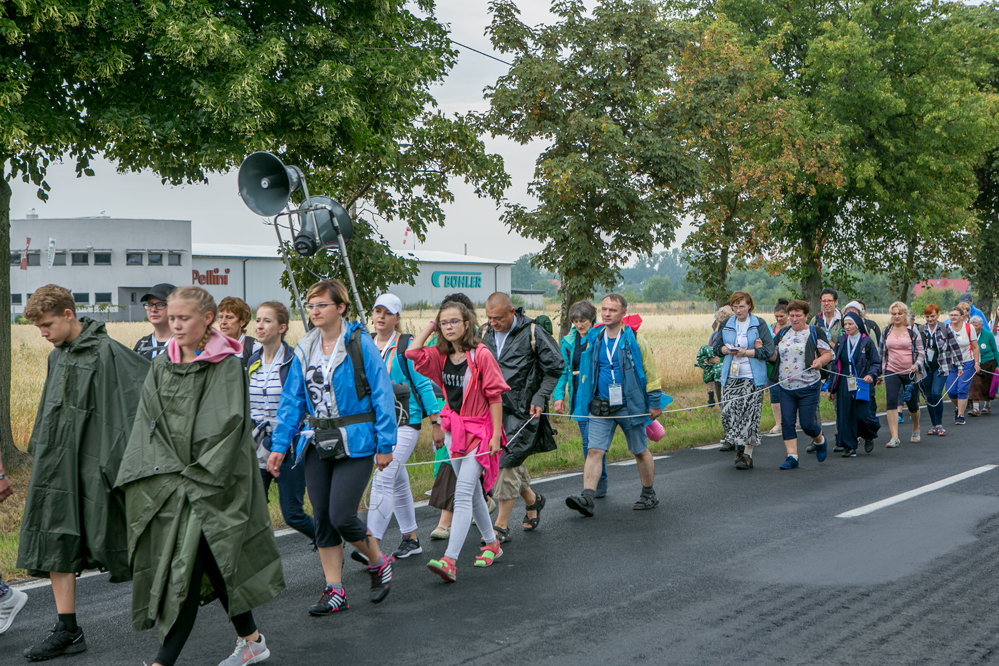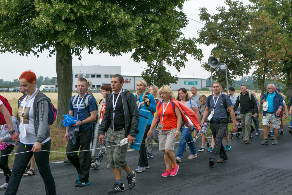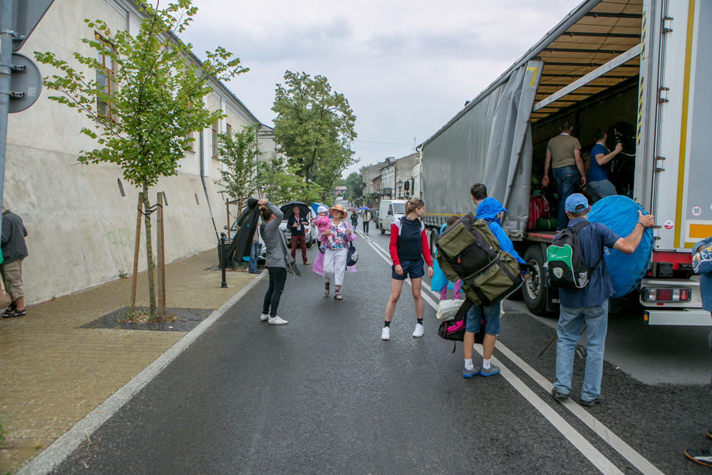 Pielgrzymka to także służby techniczne. Ciężarówkę po brzegi wypełnioną bagażami, dwa razy dziennie trzeba rozładować i ponownie załadować torbami, namiotami i innymi bagażami. O bezpieczeństwo pielgrzymów dba służba porządkowa.