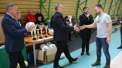 Najlepszym drużynom Powiatu Piotrkowskiego puchary w imieniu Piotra Wojtysiaka – Starosty Powiatu Piotrkowskiego wręczyli wicestarosta Dariusz Magacz i Oskar Kuliński – członek Zarządu Powiatu.