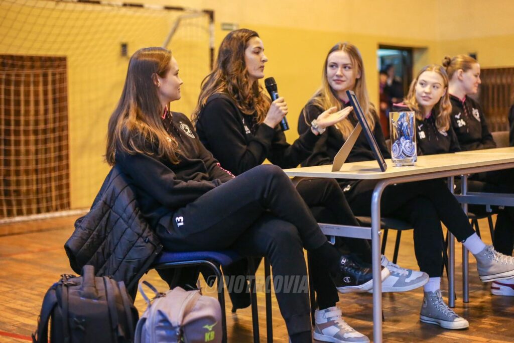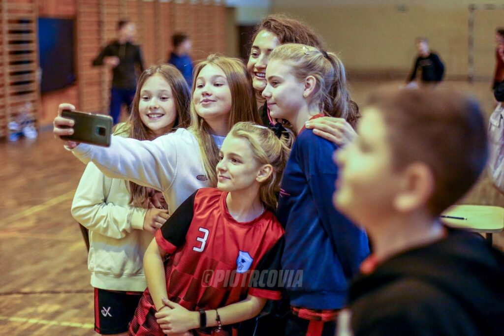 Zawodniczki Piotrcovii Aleksandra Oreszczuk, Silvie Polášková, Tauani M. Schneider, Karolina Jureńczyk, Daria Grobelna, Oliwia Suliga, Julia Jasińska i Oliwia Szczepanek gościły w Szkole Podstawowej w Budziszewicach. Nasze zawodniczki opowiadały jak zaczęła się ich przygoda z piłką ręczną, a na zakończenie zagrały pokazowy mecz z reprezentantkami szkoły. Szczypiornistki zaprosiły także uczniów szkoły na wspólny trening tym razem w hali Relax.