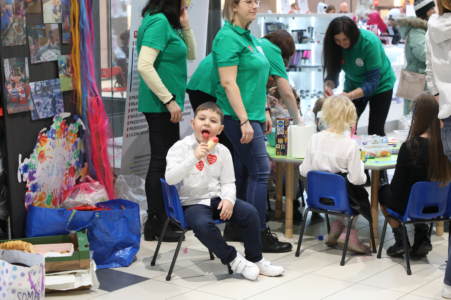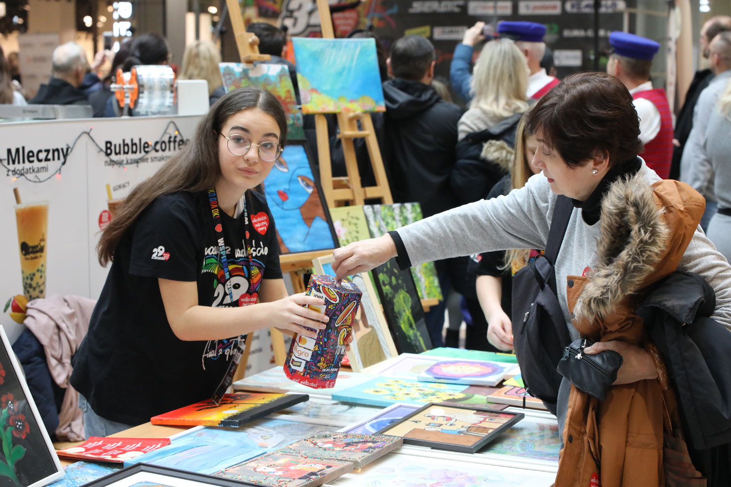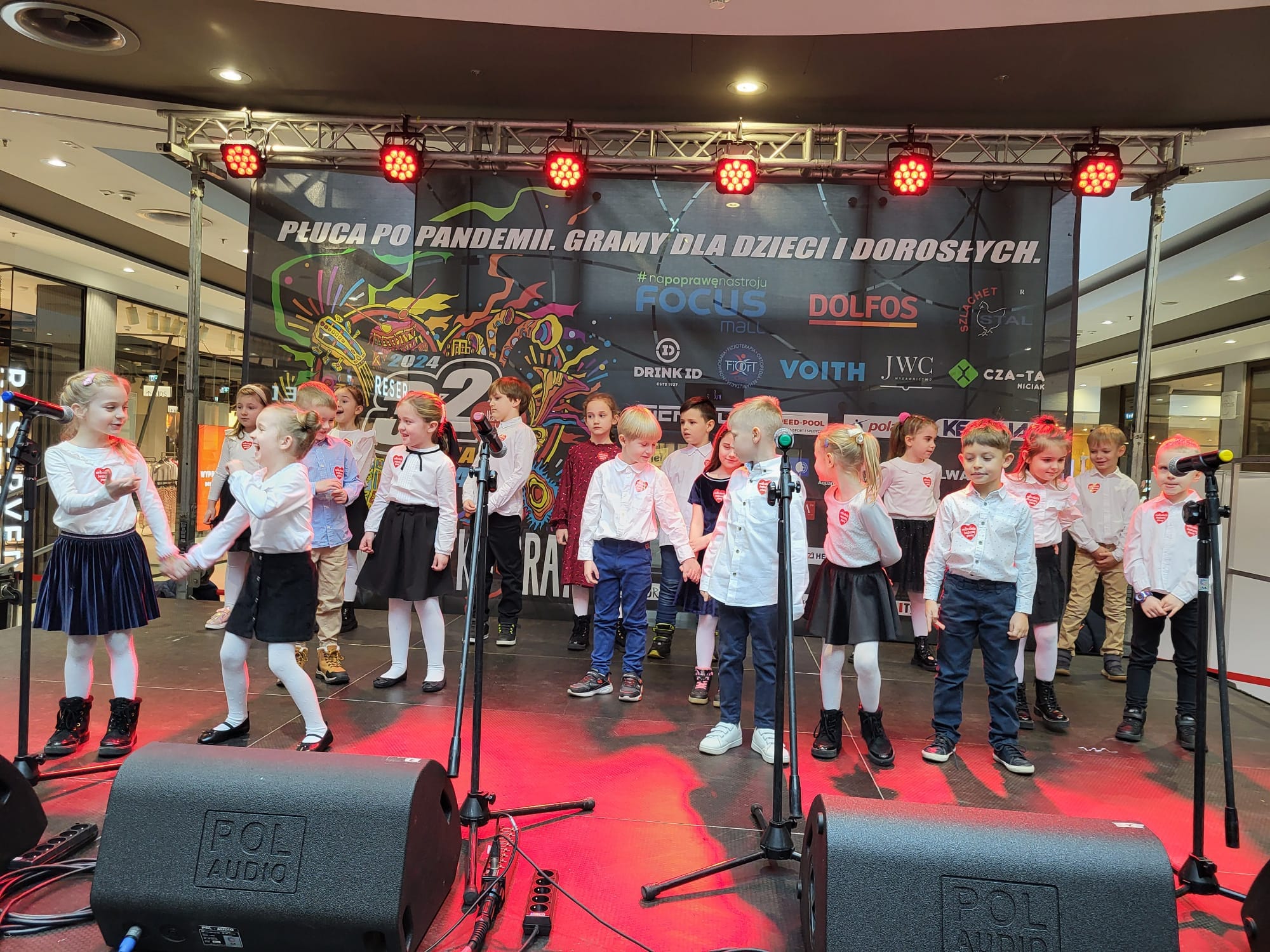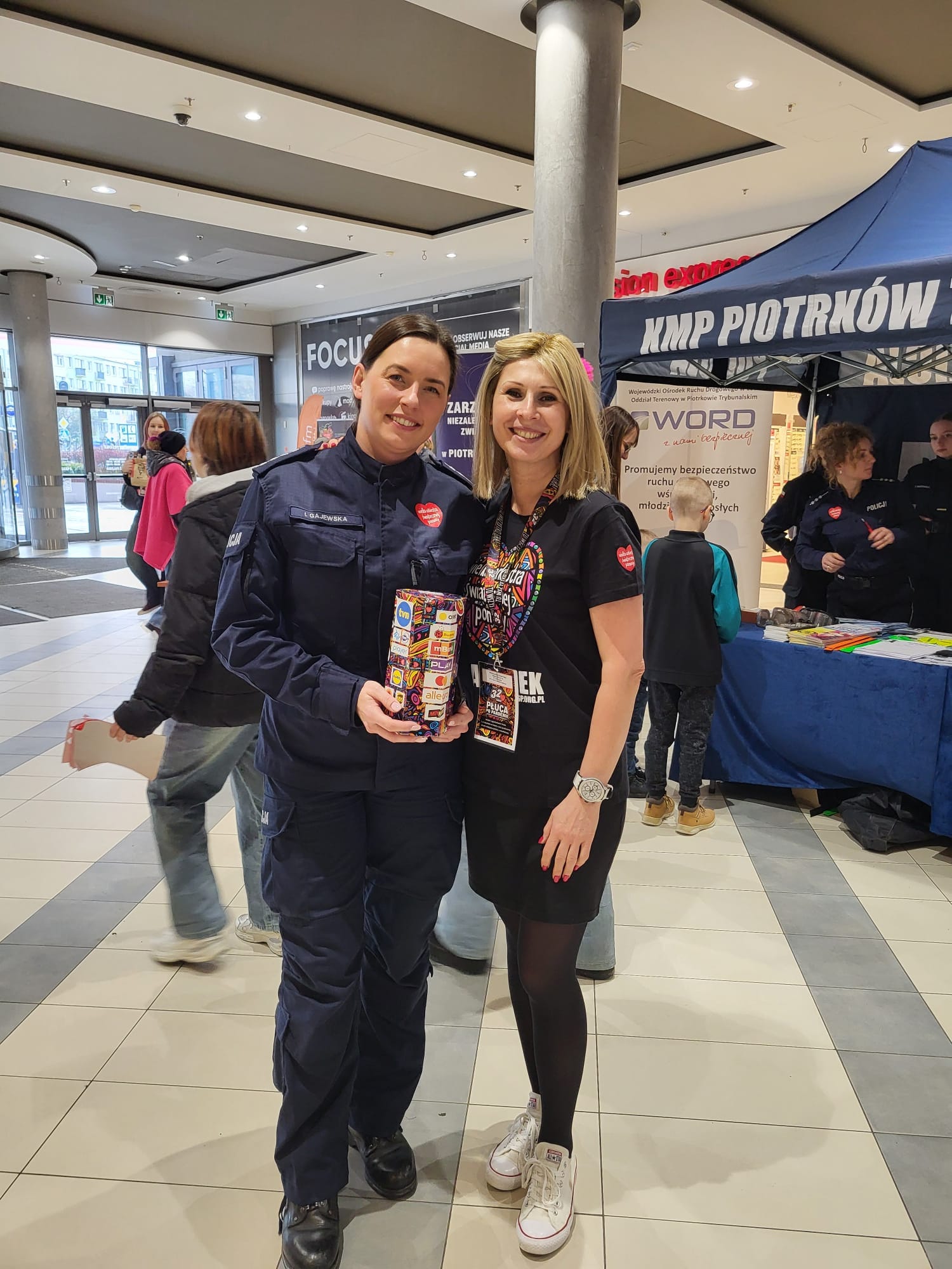 W galerii Focus zabawa rozpoczęła się się o 10:00. Na scenie zaprezentowały się między innymi dzieciaki z piotrkowskich przedszkoli, zespół ludowy „Piotrkowianie” czy klub sportowy taekwon-do. Swoje stoisko przygotowali także ratownicy WOPR oraz policjanci. Dodatkowo można obejrzeć luksusowe samochody, zabytkowe motocykle czy skorzystać darmowego makijażu. Oprócz tego są oczywiście wolontariusze z puszkami, który przez cały dzień zbierać będą datki. – Z WOŚP gram już 7 raz, a mam dopiero 13 lat – mówi Marysia, jedna z wolontariuszek. – Ja tego nie pamiętam, ale rodzice mi opowiadali, że kiedy byłam maleńka, tuż po urodzeniu, leżałam w inkubatorze z serduszkiem Wielkiej Orkiestry Świątecznej Pomocy. Moje życie ratował sprzęt z orkiestry, ponieważ urodziłam się jako wcześniak i potrzebowałam pomocy, dlatego teraz ja pomagam – mówi.