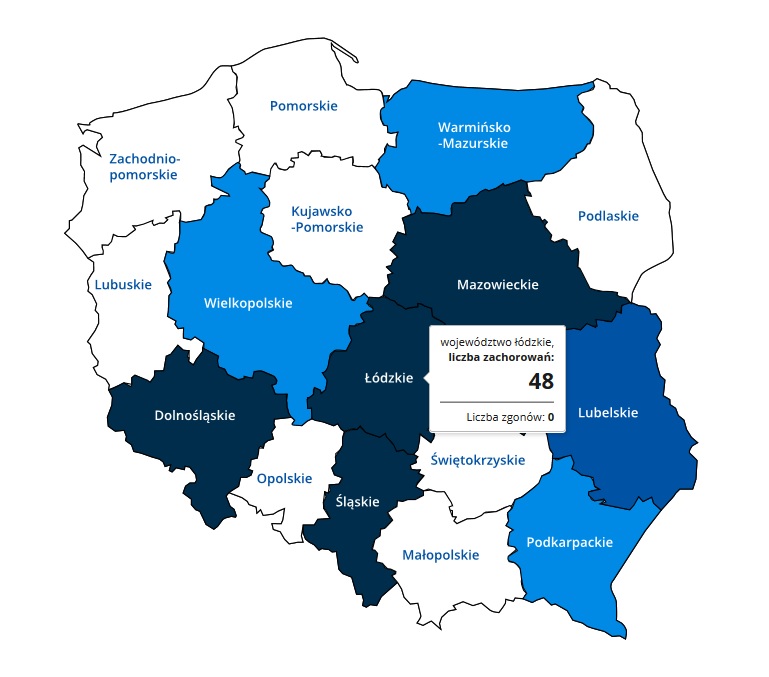 Aktualnie, w województwie na zarażonych koronawirusem jest 48 osób.