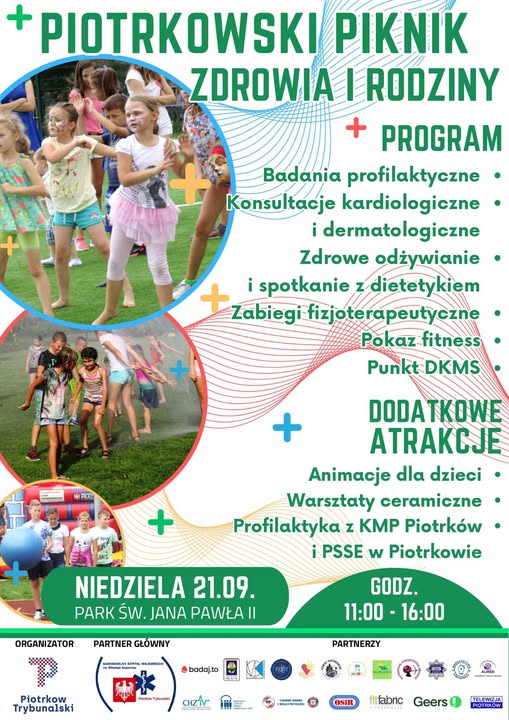 W najbliższą niedzielę, 21 września, w Parku św. Jana Pawła II odbędzie się Piotrkowski Piknik Zdrowia i Rodziny. Wydarzenie potrwa w godzinach 11:00–16:00.