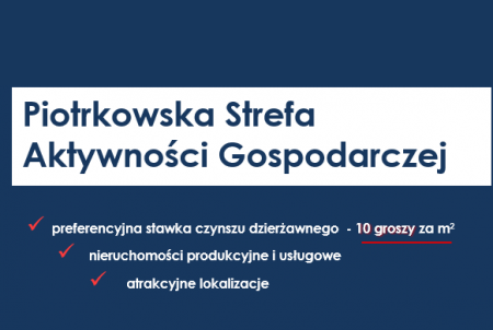 Piotrkowska Strefa Aktywności Gospodarczej funkcjonuje w Piotrkowie Trybunalskim od 2015 roku i są to wyznaczone tereny inwestycyjne, które w celu zachęcenia potencjalnych inwestorów, objęte zostały preferencyjnymi stawkami dzierżawy. Wywoławczy miesięczny czynsz za dzierżawę gruntu wynosi 0,10 zł (netto) za 1 m2 powierzchni. Okres dzierżawy wynosi 10 lat.