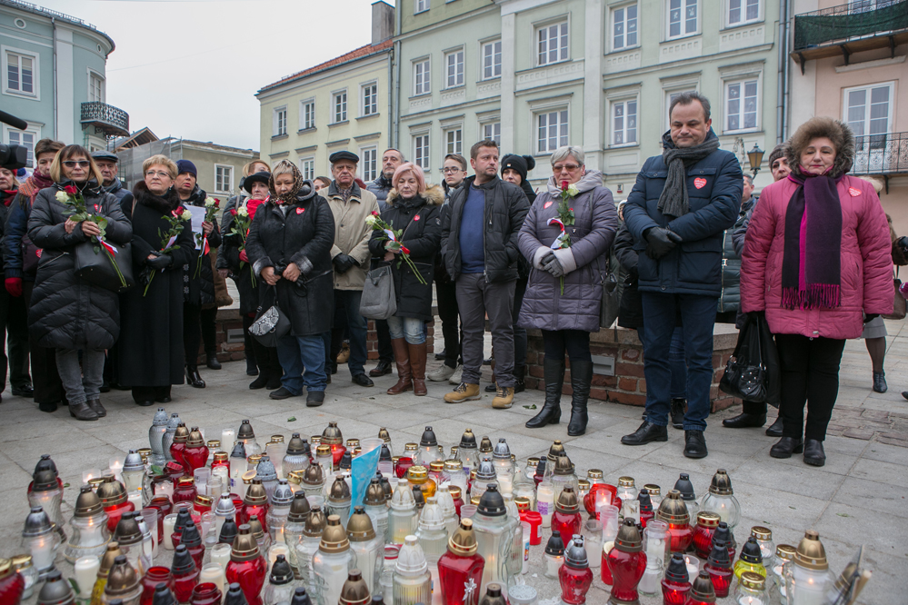 Około stu osób zebrało się w sobotę w południe na Rynku Trybunalskim, by w godzinie pogrzebu prezydenta Gdańska Pawła Adamowicza oddać mu cześć. Piotrkowianie, tak jak ostatnich dniach, zapalili znicze, a także wspólnie wysłuchali piosenkę The Sound of Silence, wykonaną podczas wiecu przed Dworem Artusa w Gdańsku.