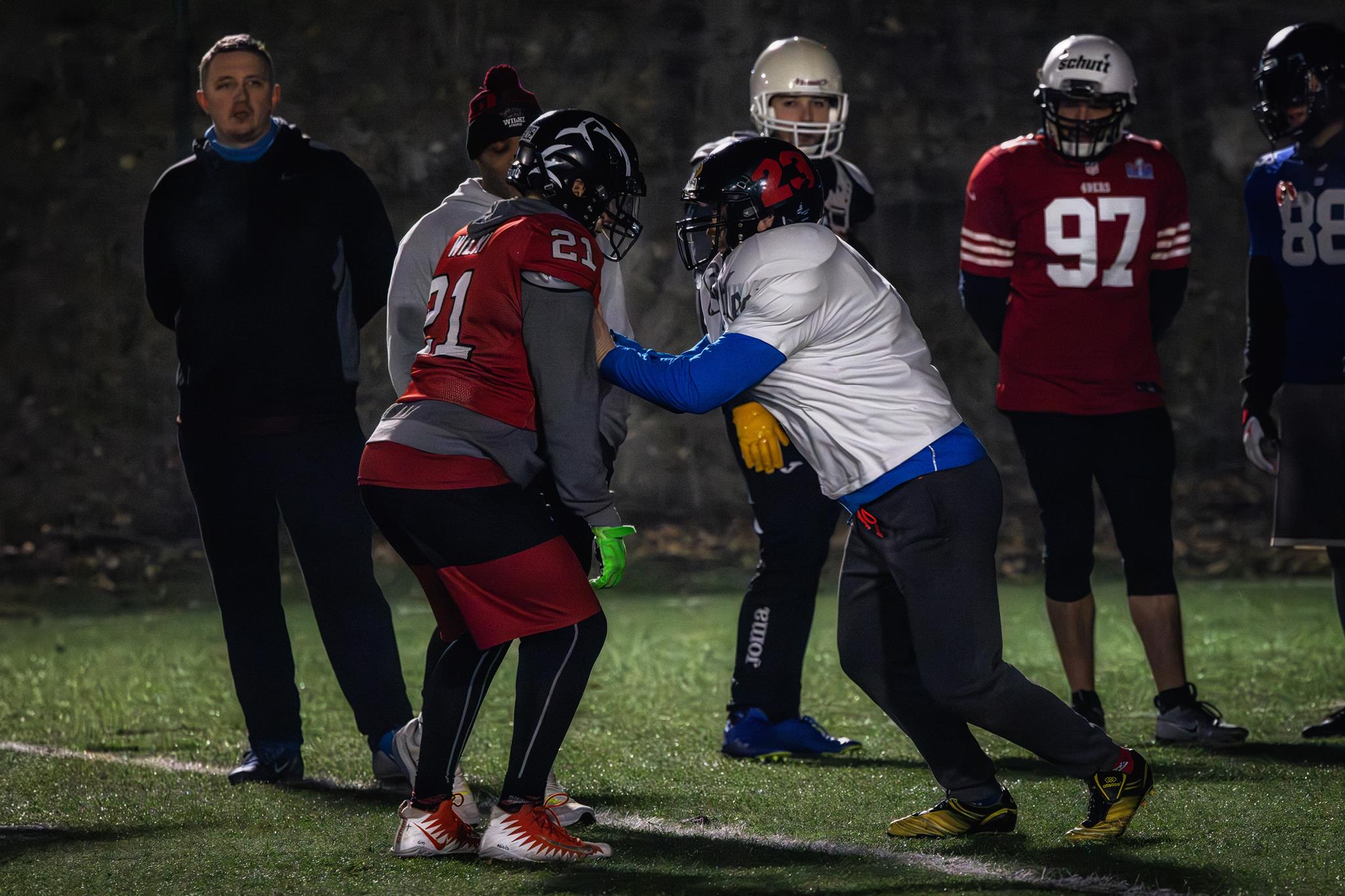 Odkąd oglądałem amerykańskie filmy lub urywki meczów, zawsze chciałem sprawdzić jak by mi poszło. Byłem ciekawy jak to faktycznie jest, aż w styczniu natknąłem się na post w mediach społecznościowych w którym „Wilki Łódź” zapraszały na trening. Długo nie myśląc sprawdziłem termin najbliższego treningu, pojechałem i tak się zaczęło.