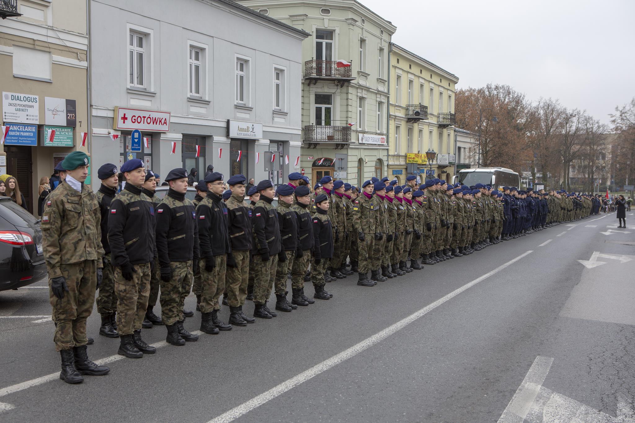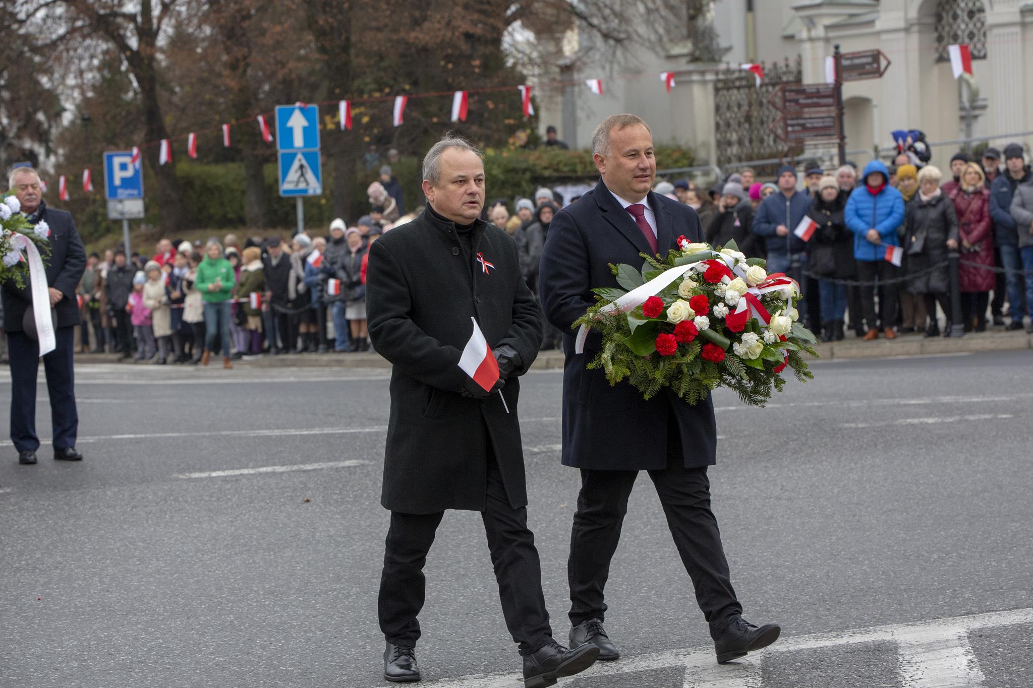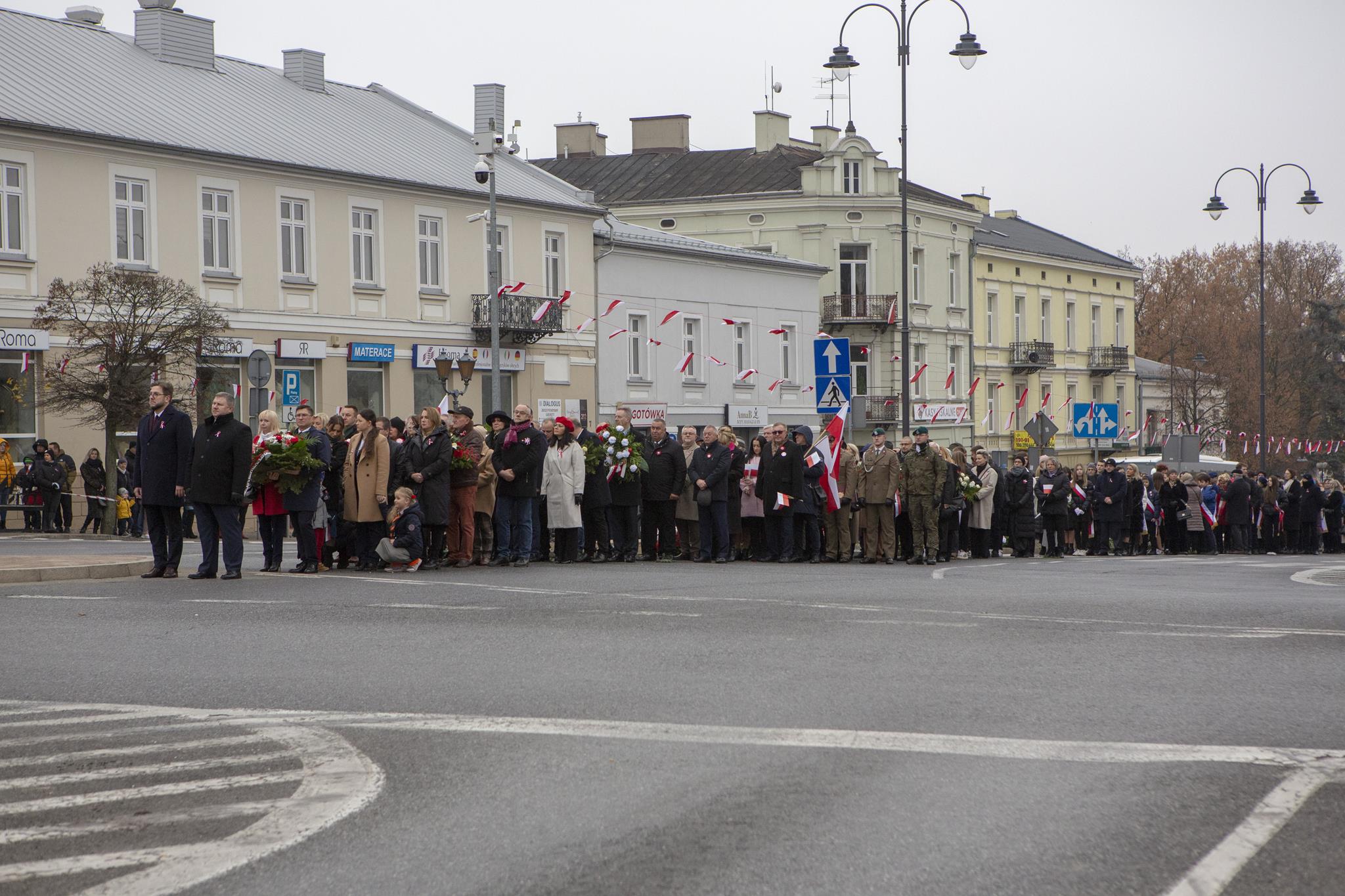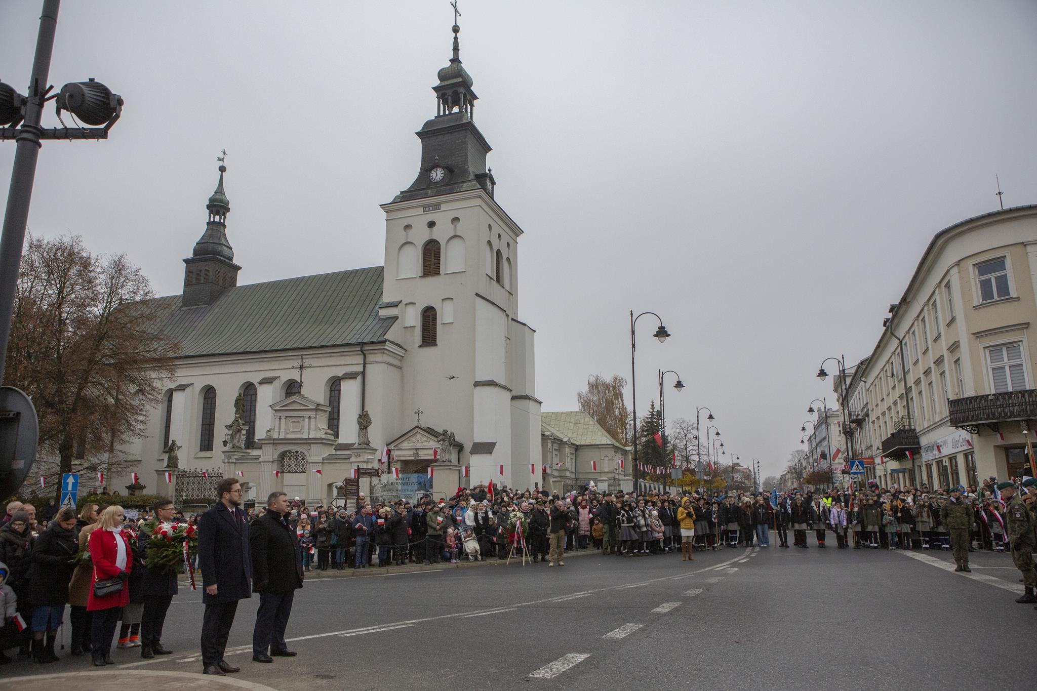 Całość rozpoczęła się od mszy świętej odprawionej w intencji Ojczyzny w kościele oo. Bernardynów. Po liturgii przybyli przeszli przy akompaniamencie Miejskiej Orkiestry Dętej i asyście żołnierzy Kompanii Honorowej 25. Brygady Kawalerii Powietrznej z Tomaszowa Mazowieckiego oraz licznie zebranych pocztów sztandarowych na plac Kościuszki. Tutaj pod pomnikiem Grobu Nieznanego Żołnierza uroczyście wciągnięto na maszt flagę państwową, odśpiewano hymn narodowy, po czym prezydent Juliusz Wiernicki wygłosił okolicznościowe przemówienie.